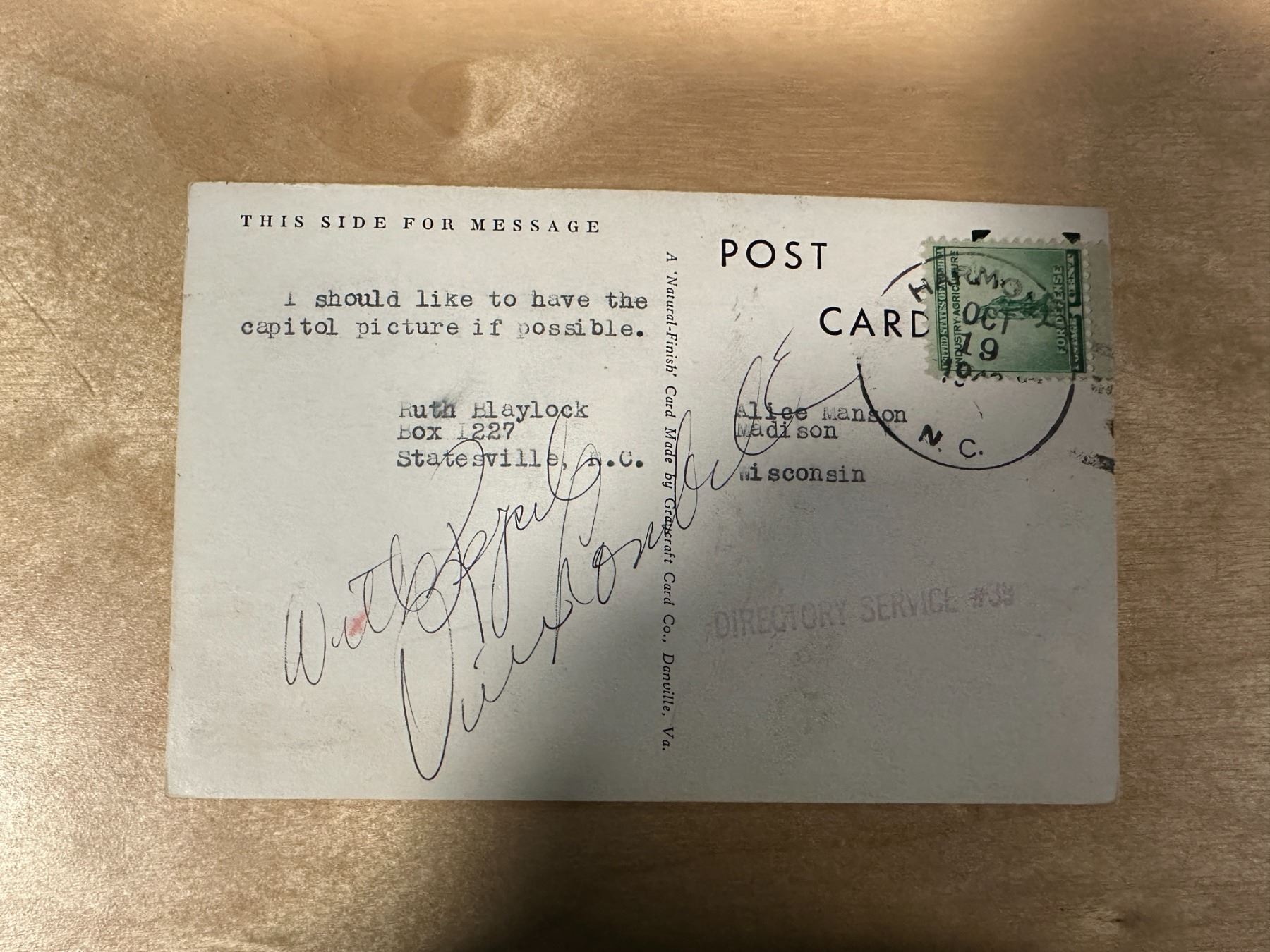 Vince Lombardi Autographed Postcard