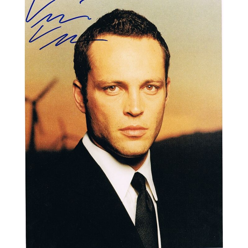 This autographed photo by Vaughn measures 10" x 8". The photograph, taken at dusk, shows the actor dressed formally in a suit and tie. The autograph and photograph are in fine condition.