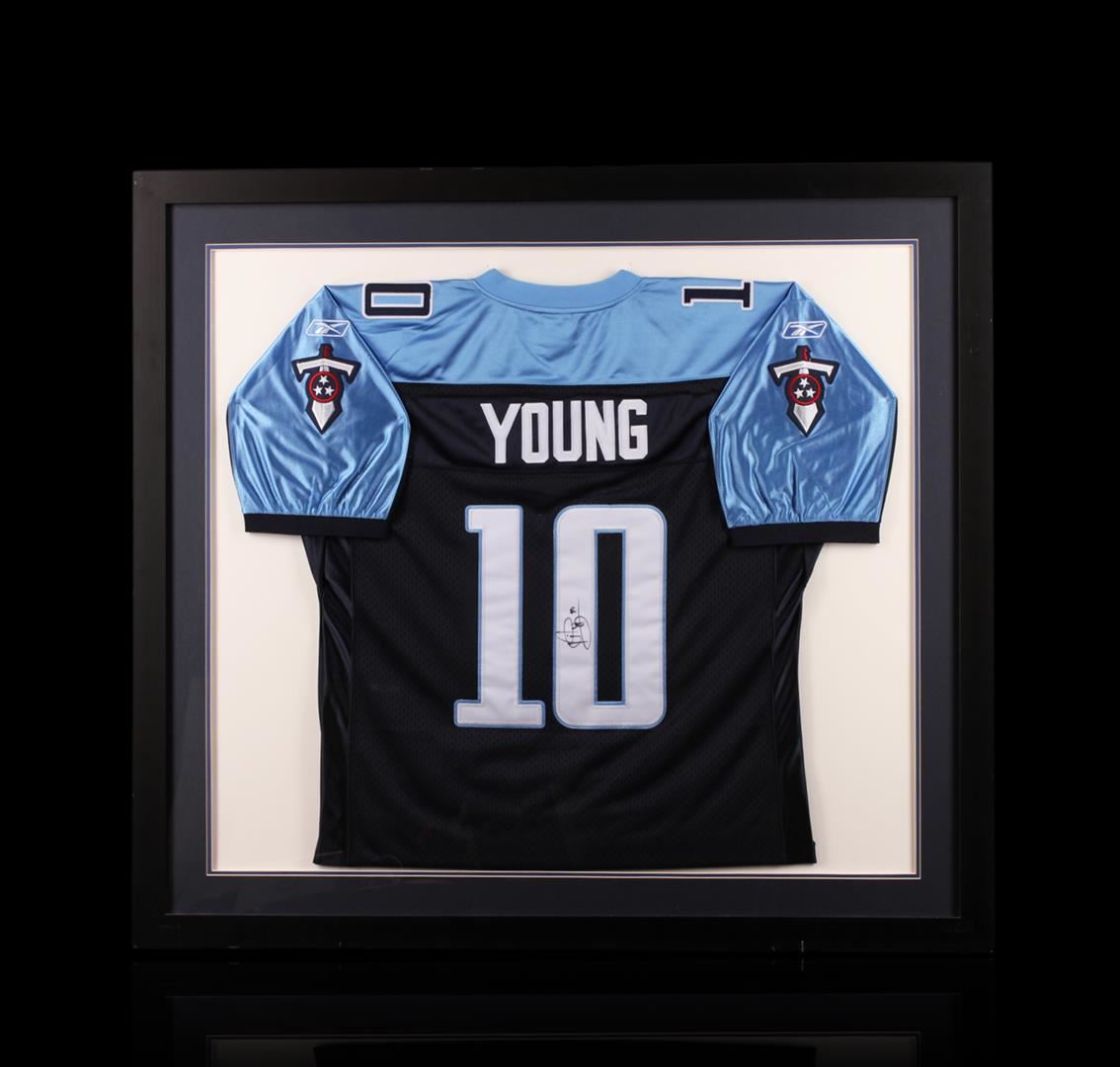 Vince Young Framed Autographed Jersey. Comes with Certificate of Authenticity.
