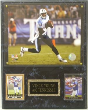 Vince Young Tennessee Titans unautographed 8x10 Photo mounted with 2 Cards on plaque