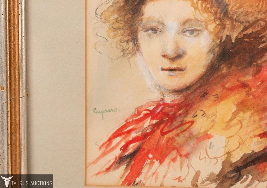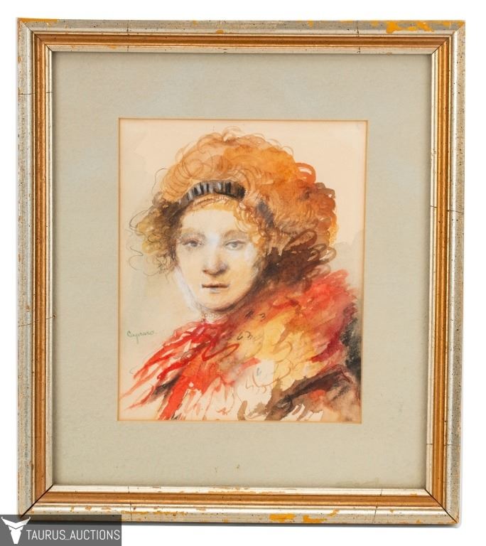 Item/Description: Mid Century modern watercolor portrait of a woman. Signed lower left. Capraro. Vincent Capraro (NY, 1929-2016)