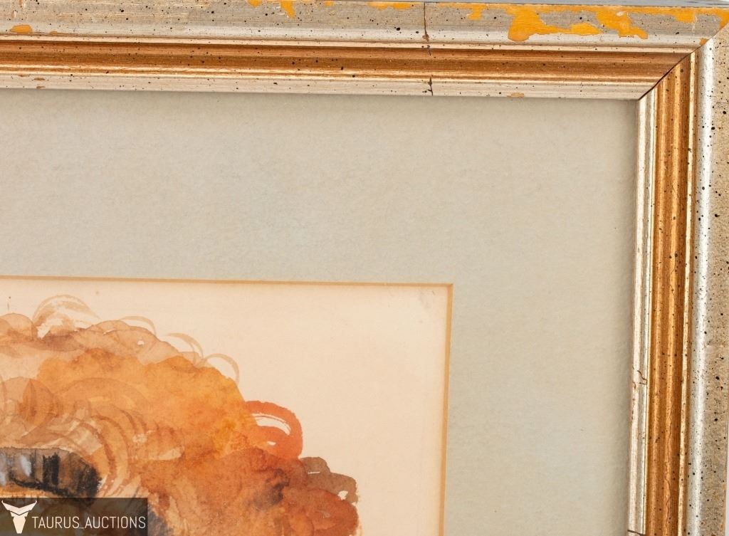 Condition: Discoloration. Staining to mat and frames paper backing. Surface wear and scratches to frame.