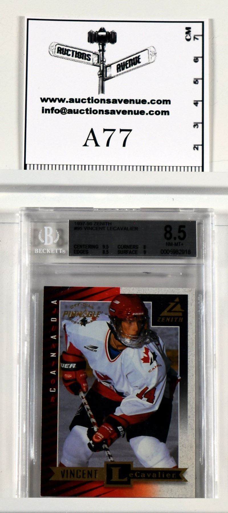 97-98 Zenith Vincent Lecavalier rookie Card, graded NM-MT+