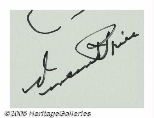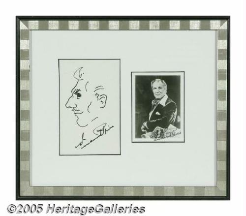 <B>Vincent Price Autographed Photo and Sketch.</B></I> A 3" x 5" profile sketch of Price nicely framed and matted along with a 2.5" x 3" photo of the wonderful actor, both signed by him in black ink. Both are in excellent condition. <I>With COA from PSA/DNA.</B></I>