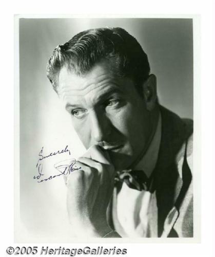 <B>Vincent Price Signed Photograph.</B></I> Known mostly for his spine-tingling roles in horror films, Price strikes a rare, more reflective pose in this fine photo portrait, signed "Sincerely, Vincent Price" in black ink. <I>With COA from PSA/DNA.</B></I>