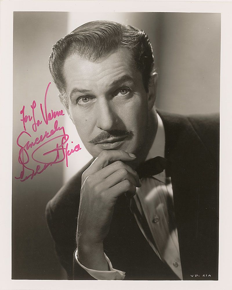 Two glossy 8 x 10 photos of Price from earlier in his career, each signed and inscribed in red felt tip. In fine condition.