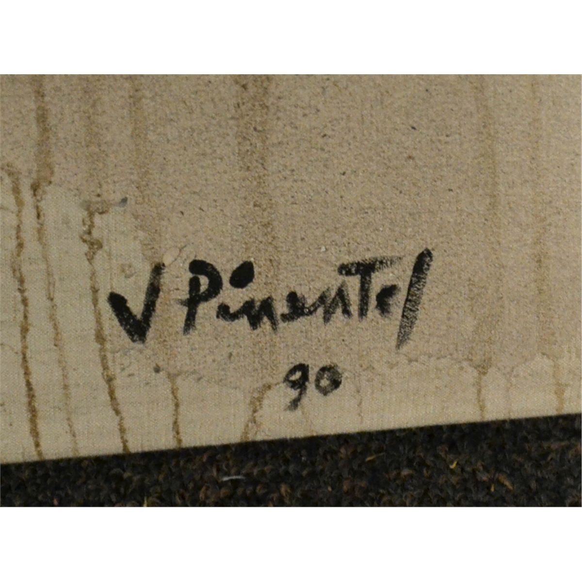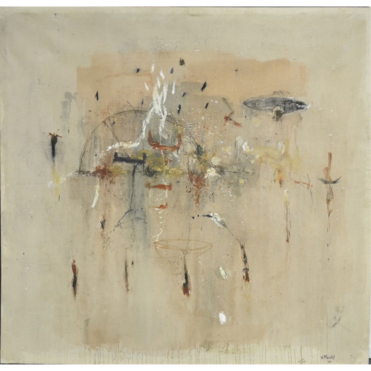 Very large, painted to depict an abstract. Vincente Pimentel, (1947-), France/Dominican Republic, known for abstract paintings. Signed and dated '90 in LR. Unframed, 72" H x 74" W. Private collection Ft. Gratiot, MI.