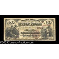 <TABLE cellSpacing=0 cellPadding=0 width="100%" bgColor=#000000 border=0><TBODY> <TR><TD width="100%"><TABLE cellSpacing=1 cellPadding=3 width="100%" border=0><TBODY><TR><TD width="100%" bgColor=#79735c><FONT face=arial color=#ffffff size=3><B>Description</B> </FONT></TD></TR><TR><TD width="100%" bgColor=#ffffff><FONT face=arial size=2><B>Vinita, Indian Territory</B></I> - $20 1882 Brown Back Fr. 502 <B>The Vinita NB</B></I> Ch. # 5083<BR>A fresh note which came out of the weeds and has never before been offered to the numismatic community. This is one of only two Territorial examples recorded from this Indian Territory issuer, and, considering that the other known specimen is a serial number 1 $5, may be the only affordable example. Evenly circulated <B>Fine+,</B></I> with strong pen signatures and no problems whatever, a most worthy addition to any state or Territorial collection. (5,000-8,000 ) </FONT></TD></TR></TBODY></TABLE></TD></TR></TBODY></TABLE><BR><TABLE cellSpacing=0 cellPadding=0 width="100%" bgColor=#000000 border=0><TBODY><TR> Important notice: Heritage usually auctions material at the rate of 200-250 lots per hour. On some occasions eBay Live bid software or the Internet may not be able to keep up with the pace of the auction. We recommend placing a realistic absentee bid now as insurance to avoid disappointment. Occasionally the auctioneer may eliminate or reject an eBay Live bid, and the auctioneer may also reopen a lot after the close of the eBay live bidding (usually because we missed an audience bid), and may reject your bid even if it shows you as the winning bidder. By bidding via eBay Live, you agree that Heritage may award the lot to another bidder at its sole discretion under the circumstances described above or any other reasonable circumstances. Also please note that all Heritage lots purchased through eBay Live carry a 20% Buyer's Premium. Please make sure you read the Terms and Conditions before you bid.</TR></TBODY></TABLE>