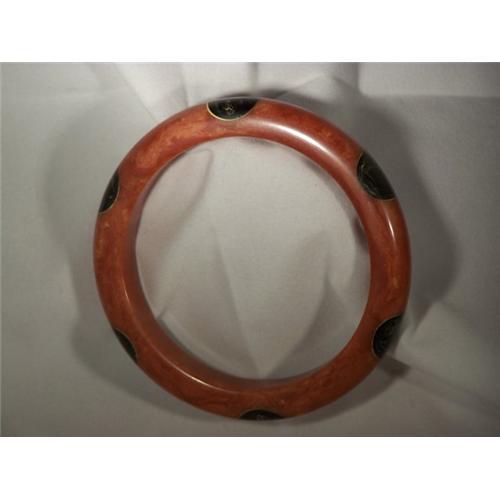 <tr><td>Title:Vint. Bakelite Six Dot Brownish w/Black Bangle</td></tr>