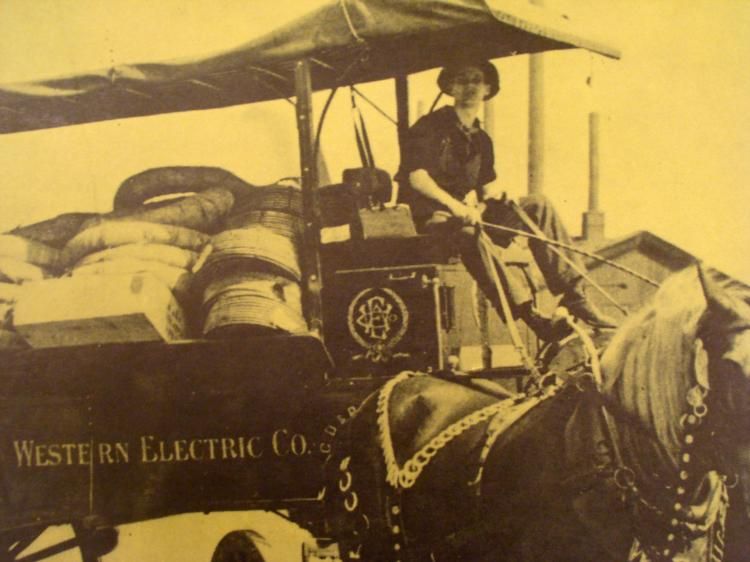 Western Electric Wagon, with load of distributing wire, pulled by a three-horse hitch. * Medium: Photographic print on colored paper * Date: 1913Image Size: 15 x 20" * Paper Size: 17" x 22" * Condition: Excellent *