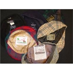 Vintage wool driving caps. " Carnaby Style". Navy and black. Made in Great Britain. Kangol red plaid. England - grey tweed. Ireland - black watch & grey & tan plaid. Pendleton. Condition: Very Good