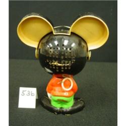 Vintage Mickey Mouse pull toy by Mattel. 1975. Hong Kong. Working condition. Pull string and Mickey says "Mouseketeers have big ears." 7" tall. Marked Walt Disney Productions. Condition: Some loss to black paint, otherwise good.
