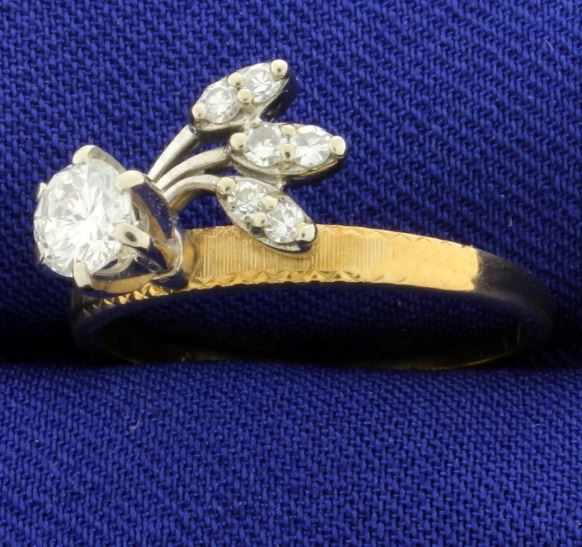 Ring is 14K yellow and white gold. The center diamond is .35 ct, G color/VS clarity. There are six .03 ct side stones that are G color/VS clarity. Size7.5 2.6g
