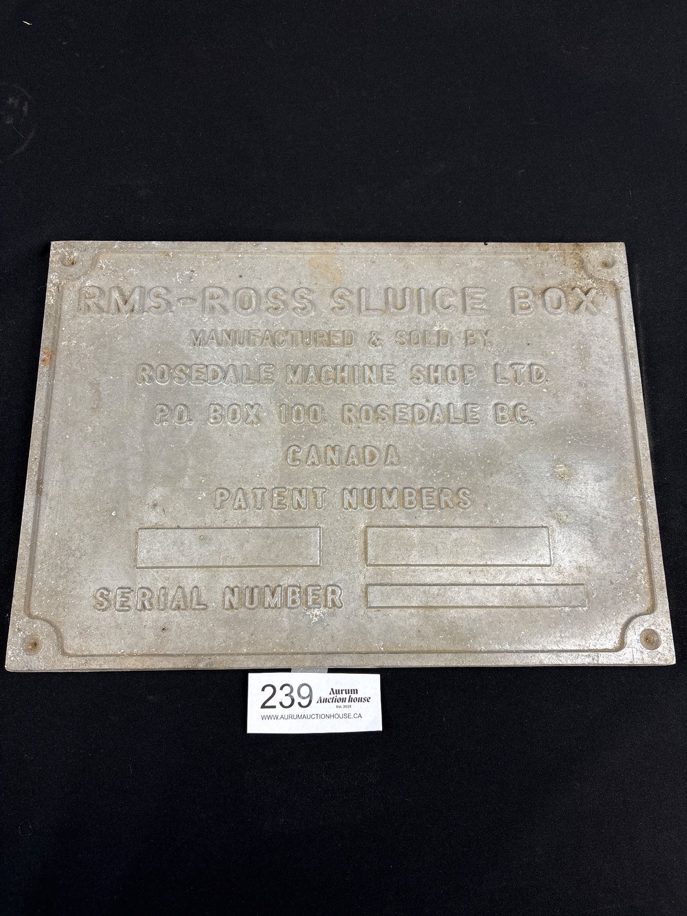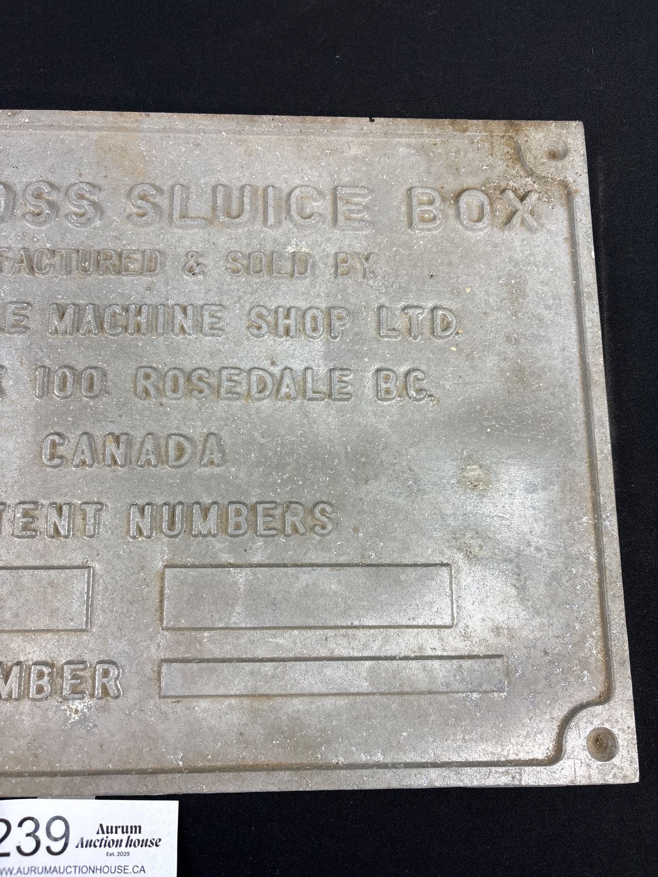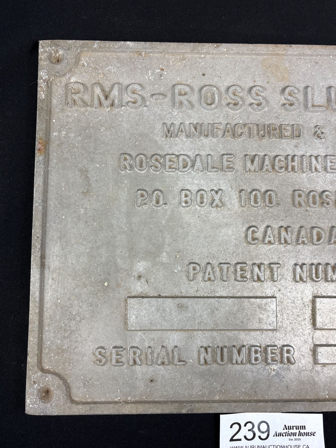Vintage 14" x 10" Cast RMS Ross Sluice Box Machine Plate From Rosedale Machine Shop BC