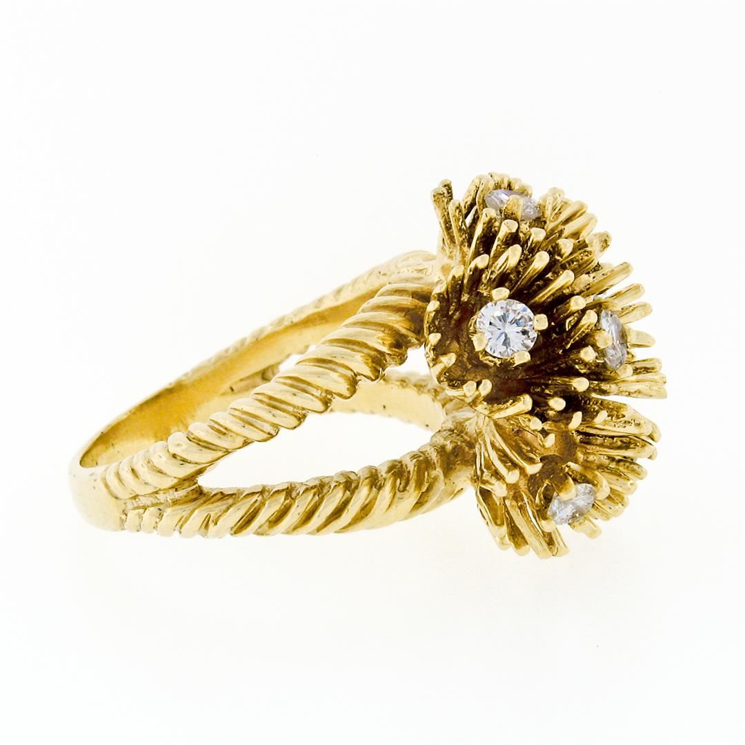 A vintage solid 14k yellow gold cocktail ring, with 6 round brilliant cut natural diamonds (G/H- SI1 ; 0.48ctw). The ring is size 6.5, weighs a total of 10.33 grams, and measures 18.5mm wide.