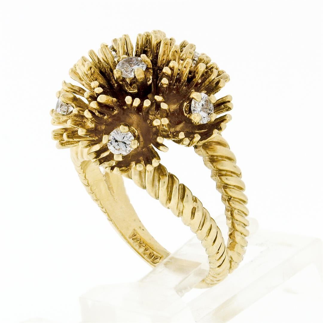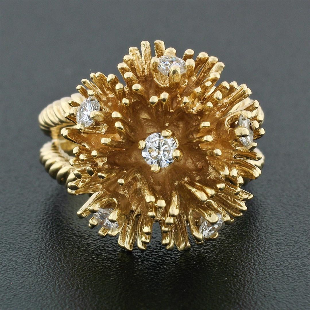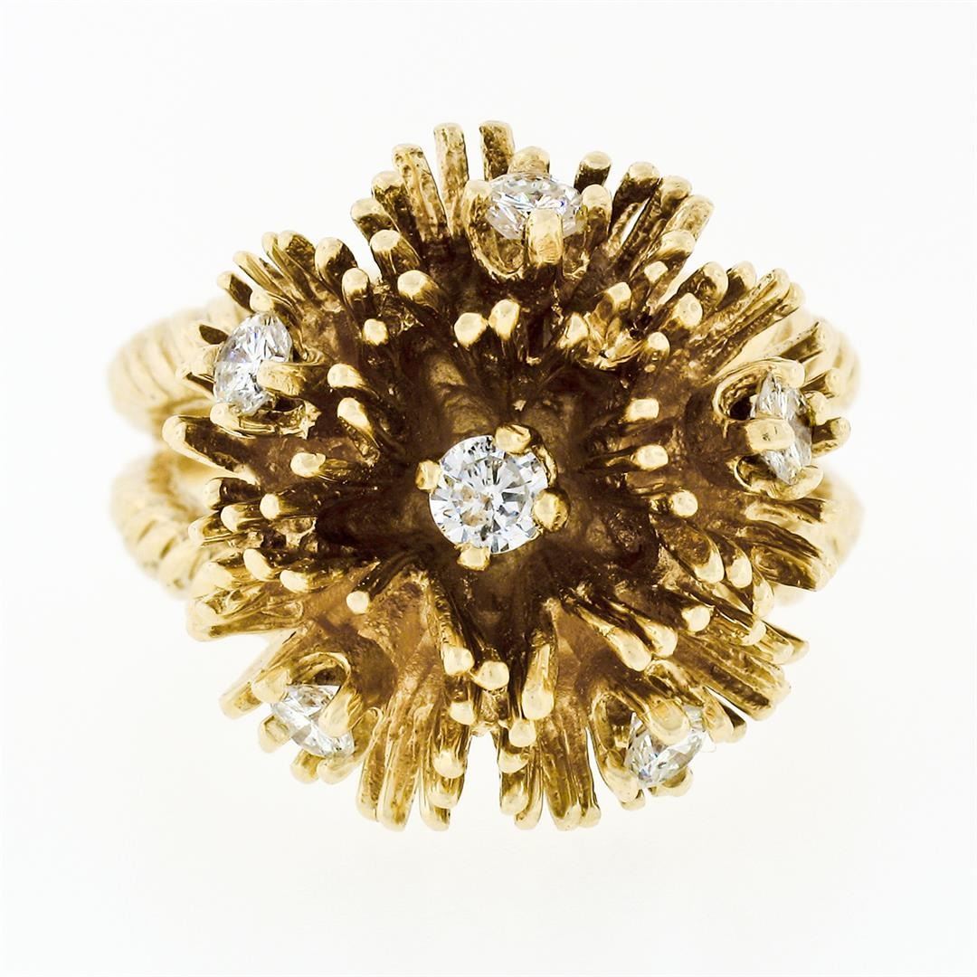 A vintage solid 14k yellow gold cocktail ring, with 6 round brilliant cut natural diamonds (G/H- SI1 ; 0.48ctw). The ring is size 6.5, weighs a total of 10.33 grams, and measures 18.5mm wide.