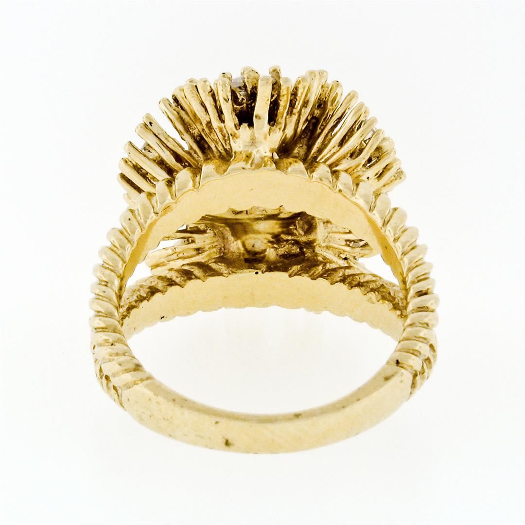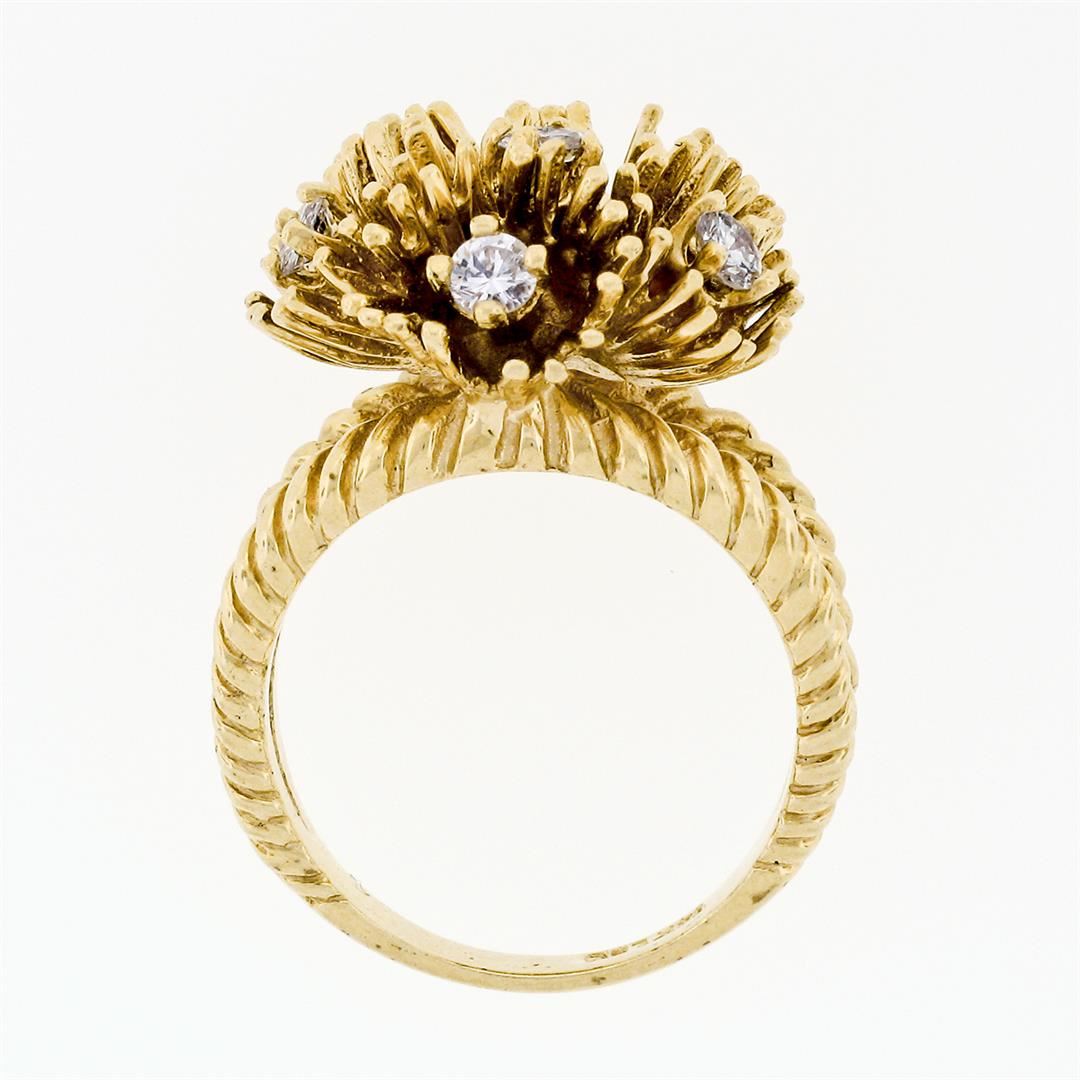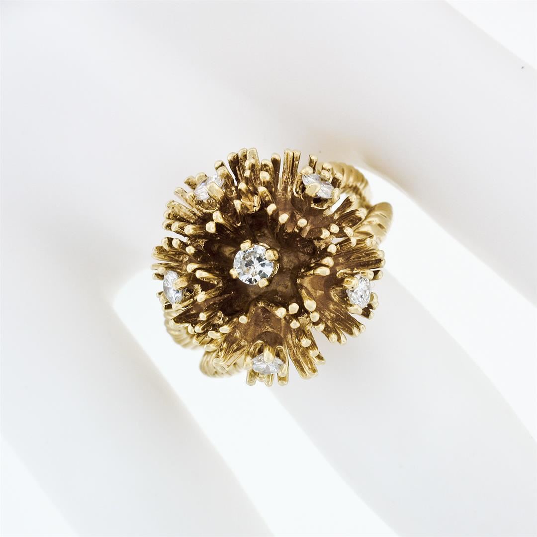A vintage solid 14k yellow gold cocktail ring, with 6 round brilliant cut natural diamonds (G/H- SI1 ; 0.48ctw). The ring is size 6.5, weighs a total of 10.33 grams, and measures 18.5mm wide.