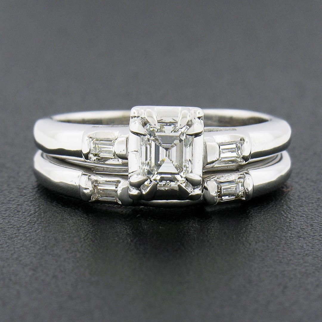 Vintage 14K Gold 0.50 ctw Emerald Cut Diamond Engagement Ring Matching Band Set