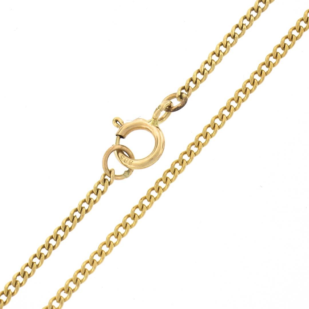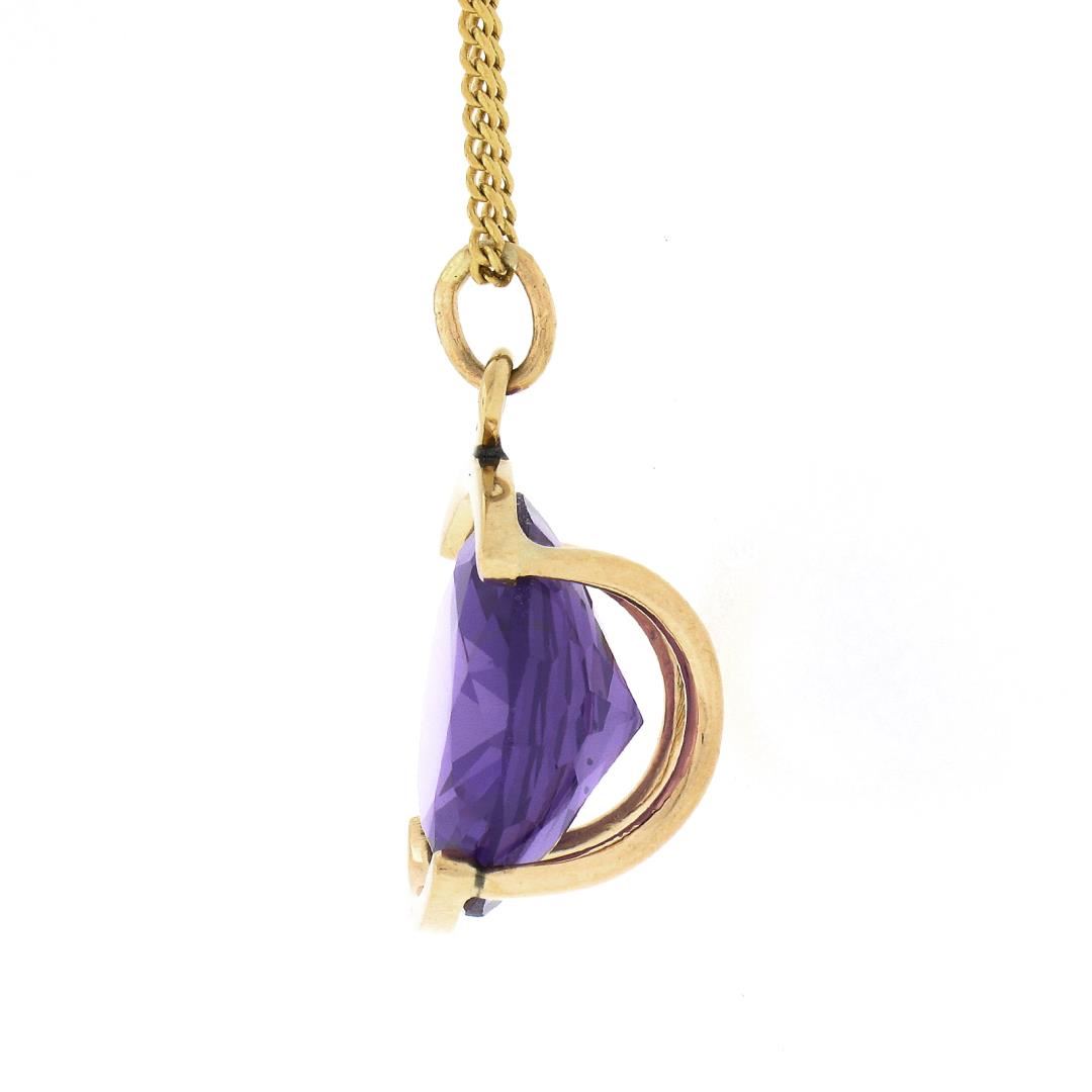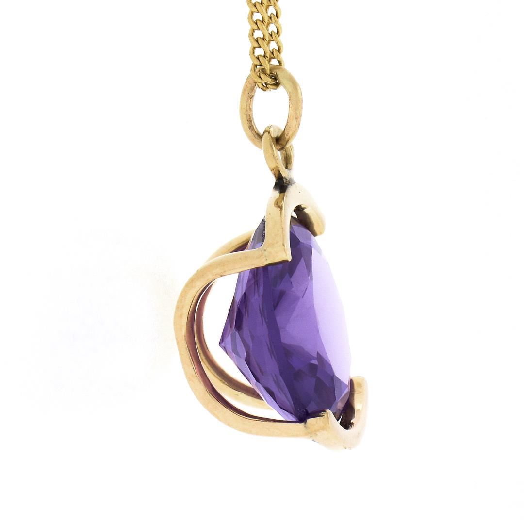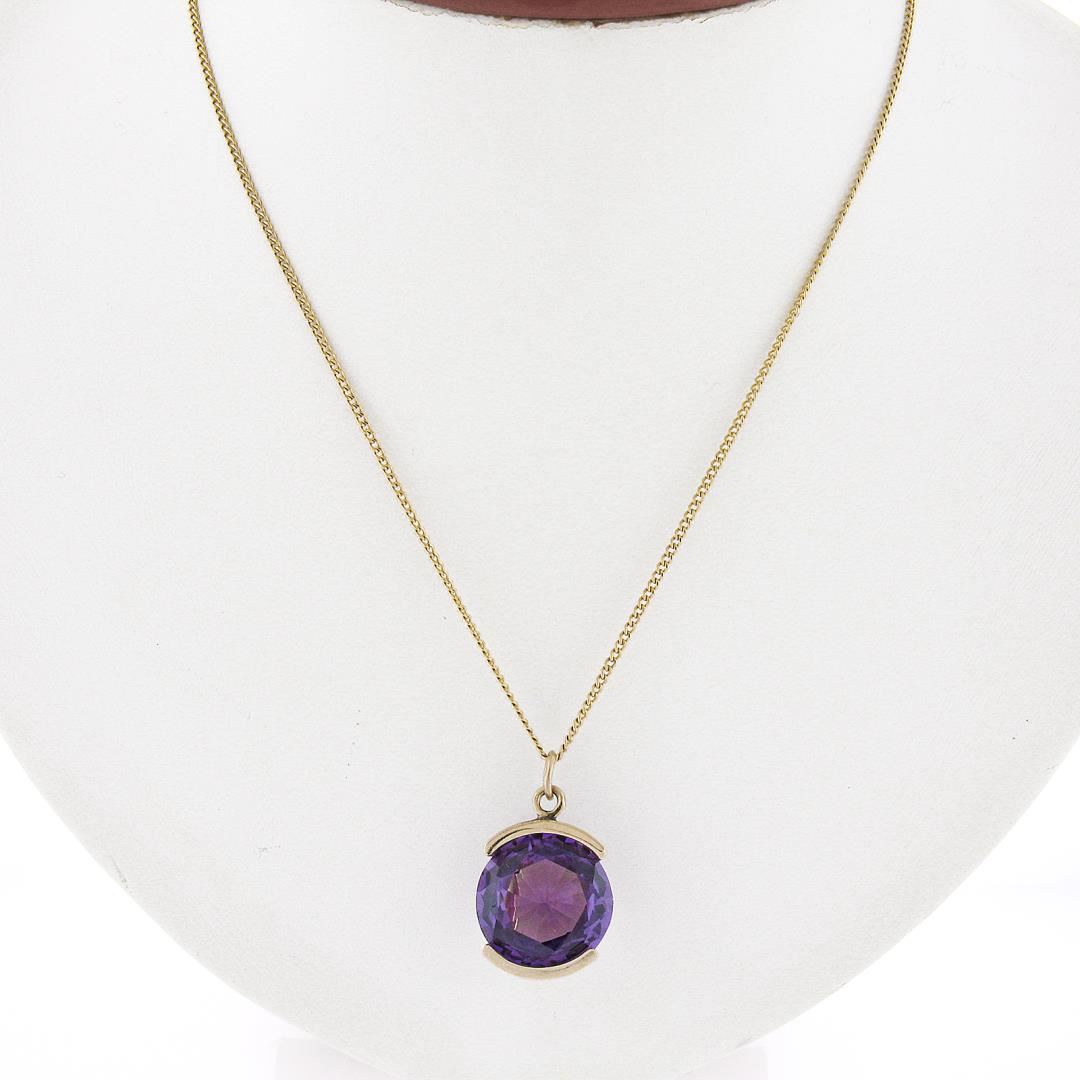 A vintage solid 14k yellow gold pendant necklace, with 1 round cut synthetic alexandrite (15.80mm).18.5 inch curb link chain, 7.34 grams total weight, pendant measures 25.90x15.80mm.