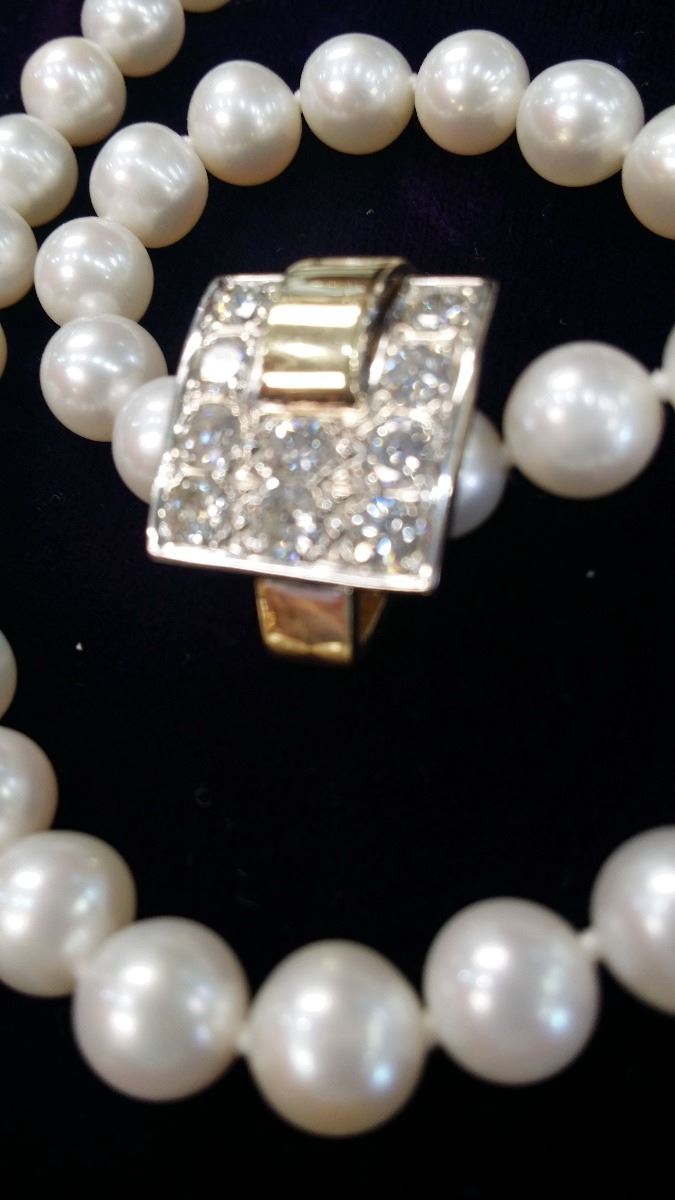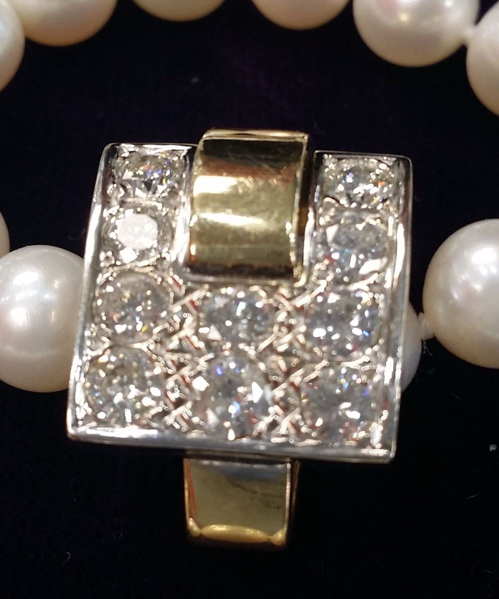 Solid 14K Gold Pearl Strand Enhancer with 10 Large Size 1/8 ct Each totalling 2.00ctw Diamonds (10 Old Cut Diamond Round Brilliant Cuts)