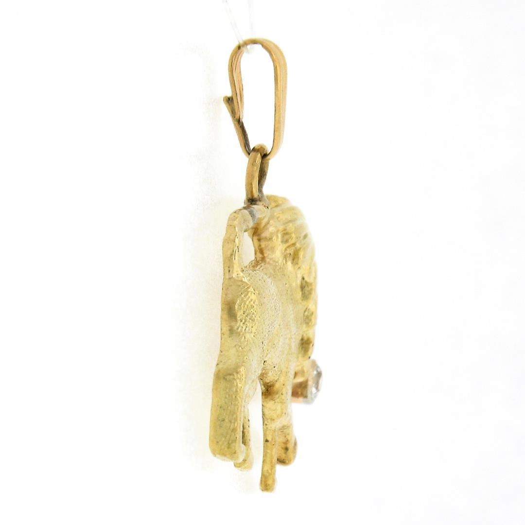 A vintage 14k yellow gold lion charm pendant, with 1 old european cut natural diamond (G - SI1 ; 0.05ct). The pendant weighs a total of 4.0 grams, measures 25.60x24.4mm including the bail, and the inside of the bail measures 5.6x2.2mm.