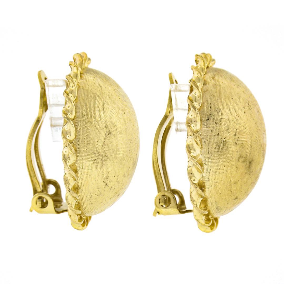 A vintage solid 14k yellow gold button earrings. The earrings measure approximately 26.3mm in diameter and weigh a total of 15.27 grams.