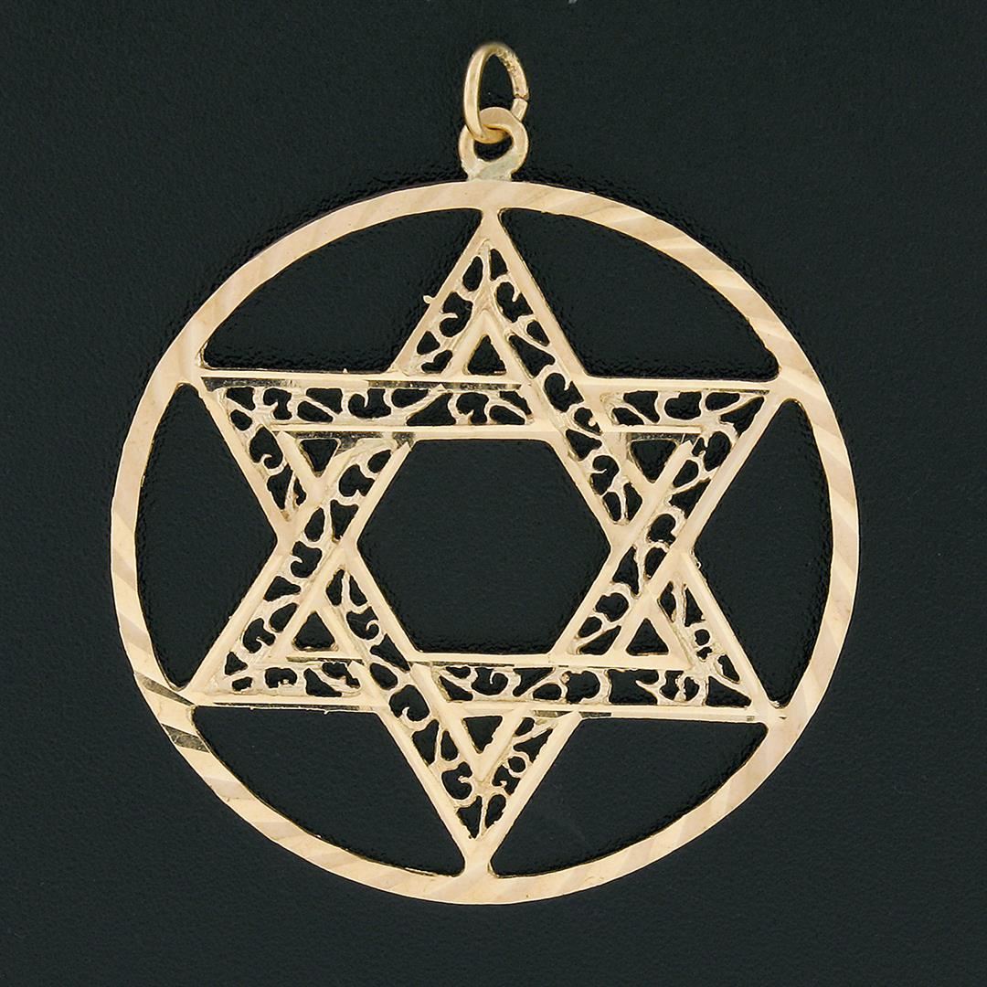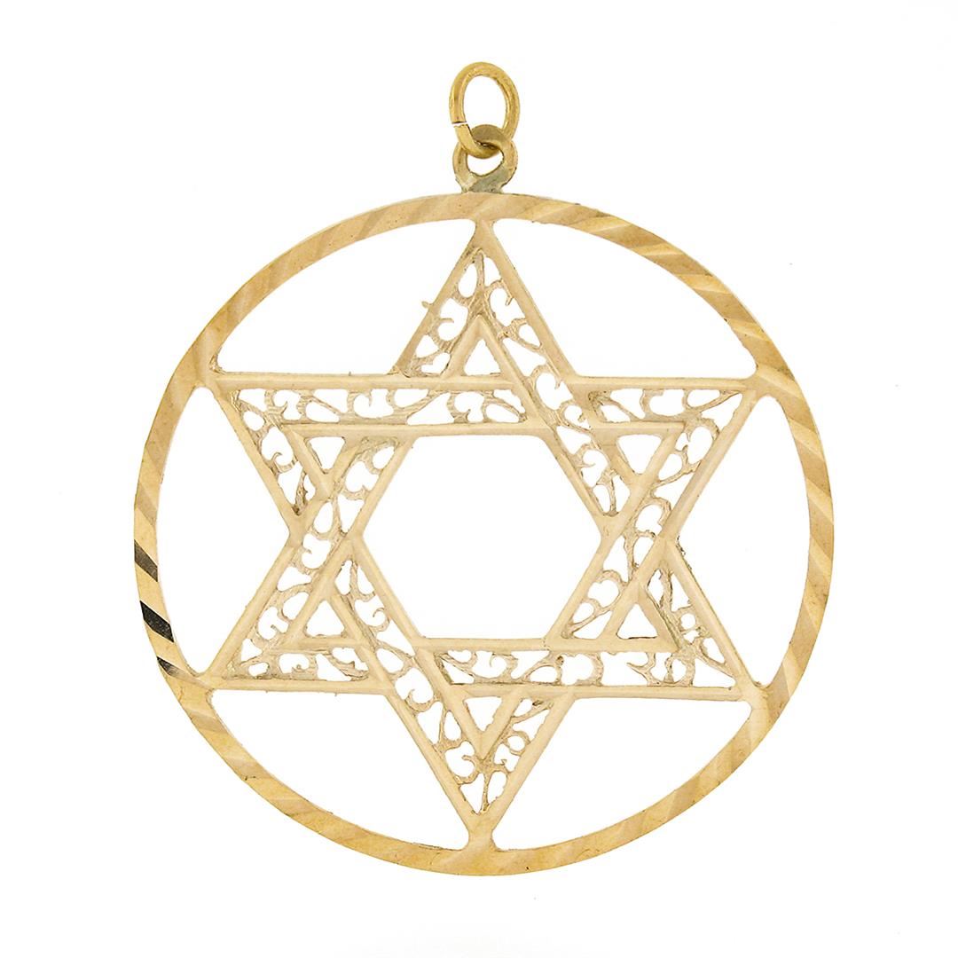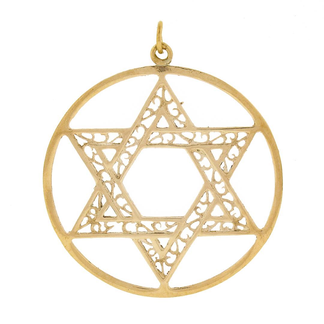 Vintage 14K Gold Large Open Star of David w/ Filigree Work Circle Charm Pendant
