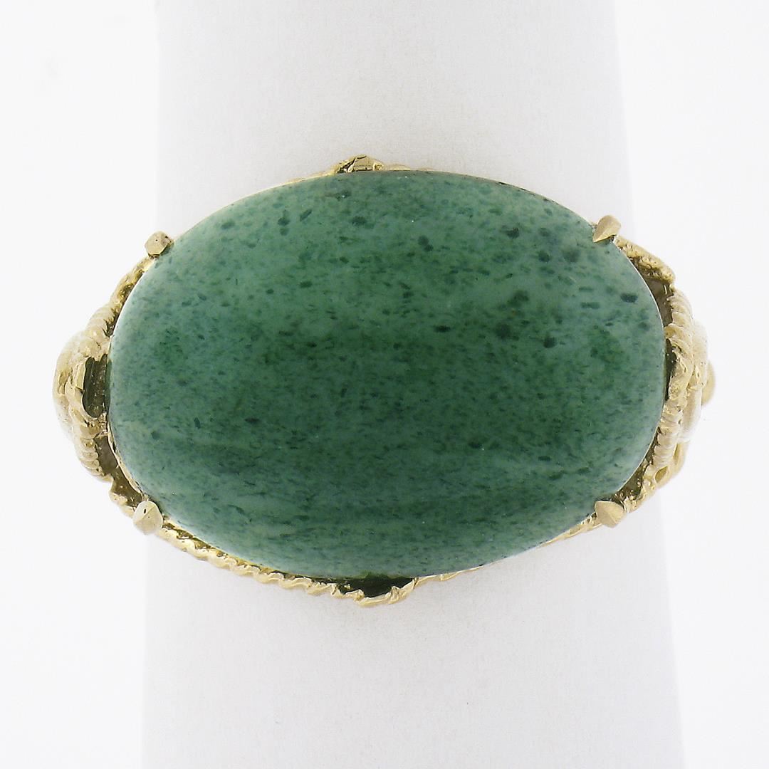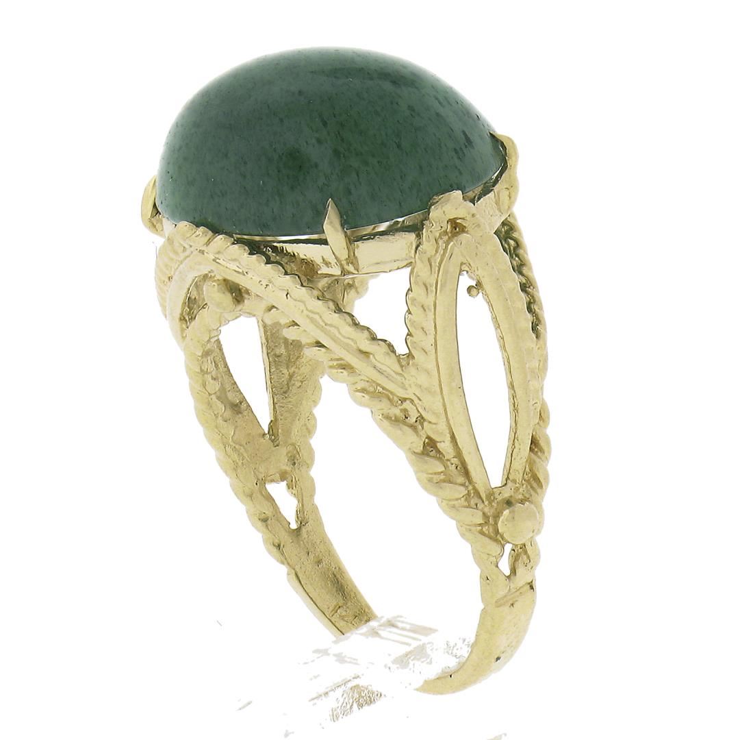 Vintage 14K Gold Oval Cabochon Cut Green Stone Twisted Wire Open Work Band Ring