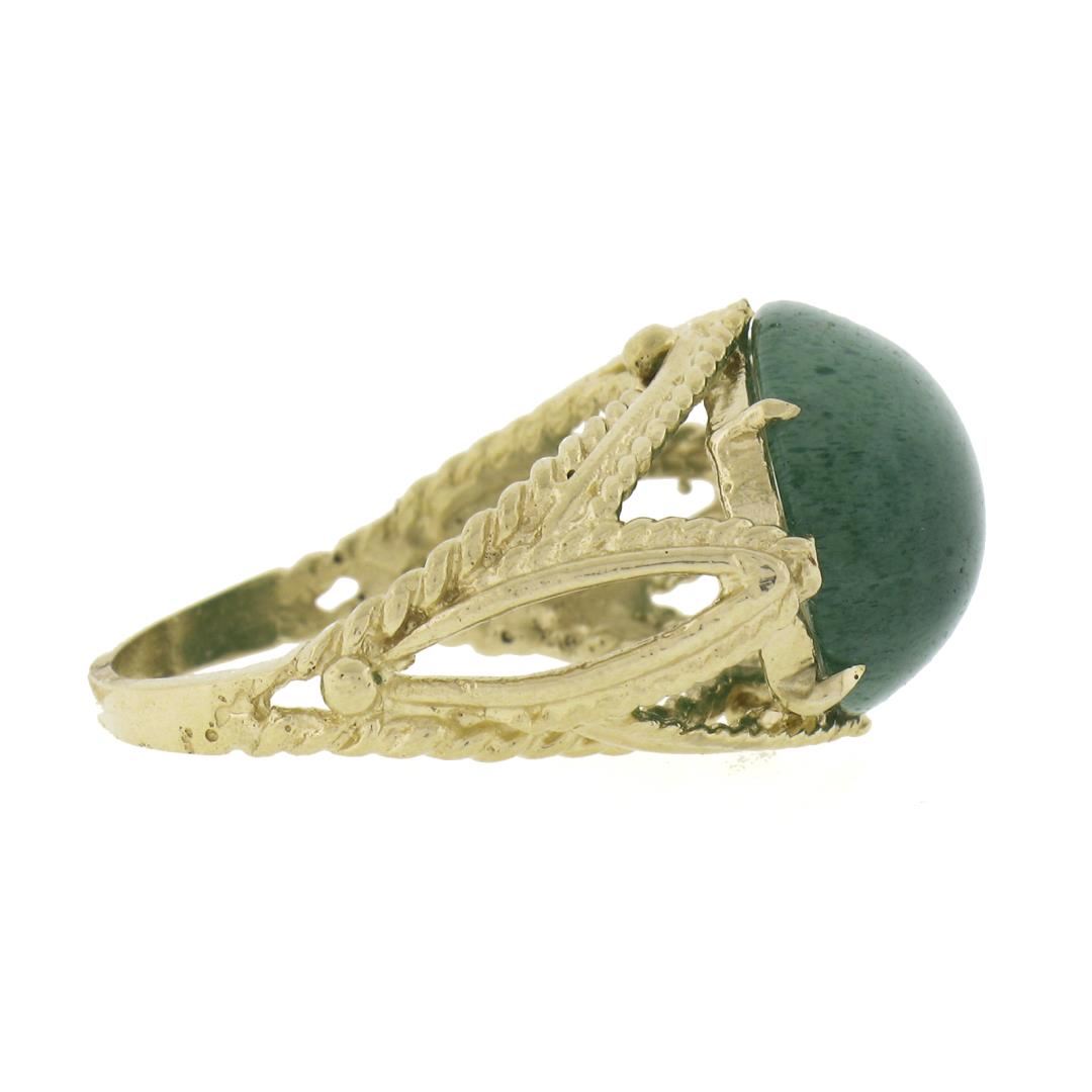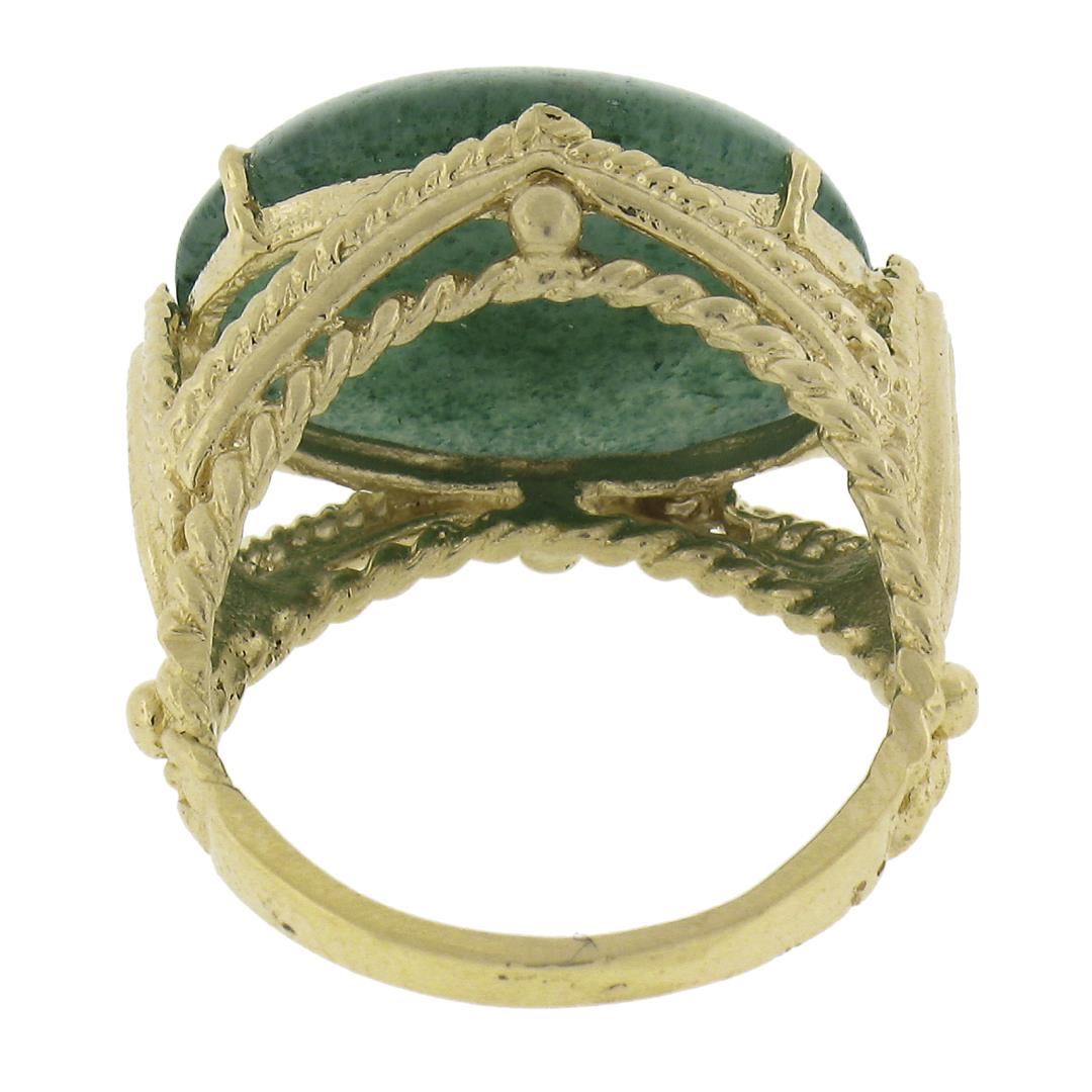 Vintage 14K Gold Oval Cabochon Cut Green Stone Twisted Wire Open Work Band Ring