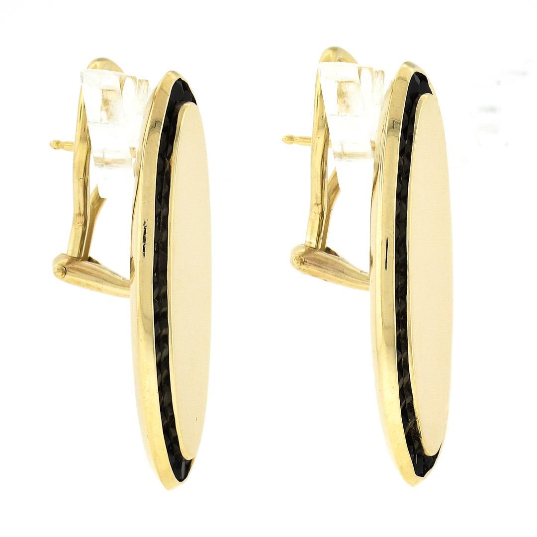 A vintage solid 14k yellow gold earrings, with numerous of single cut natural garnets (2ctw). The earrings measure approximately 30.80x12.25mm and weigh a total of 8.89 grams.