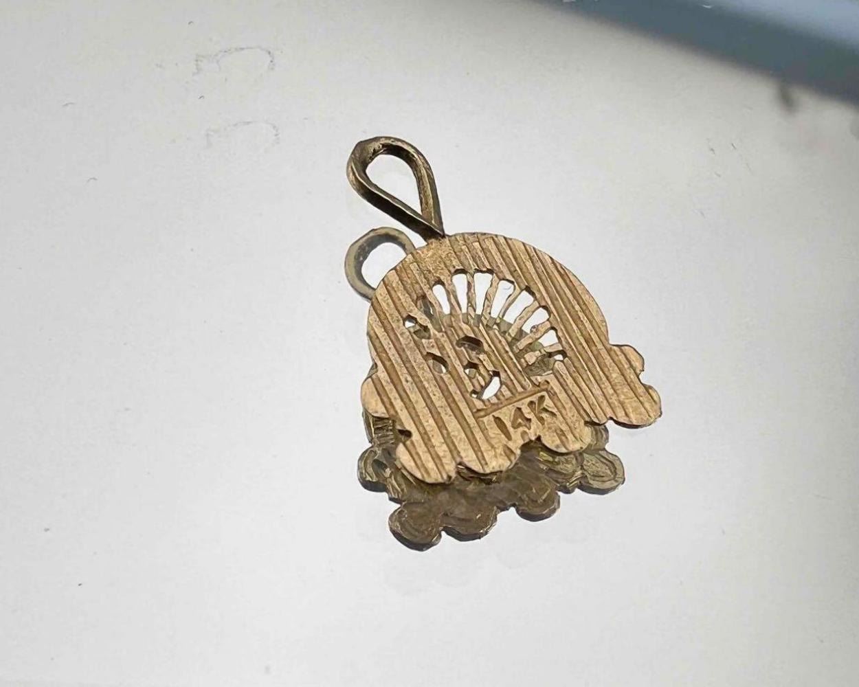 Vintage 14K Gold Rising Sun Charm. 0.5g. Marked 14K. Approximately 0.5625 L x 0.375 W Inches. ALL CREDIT CARDS WILL BE MANUALLY VERIFIED PRIOR TO SHIPMENT.