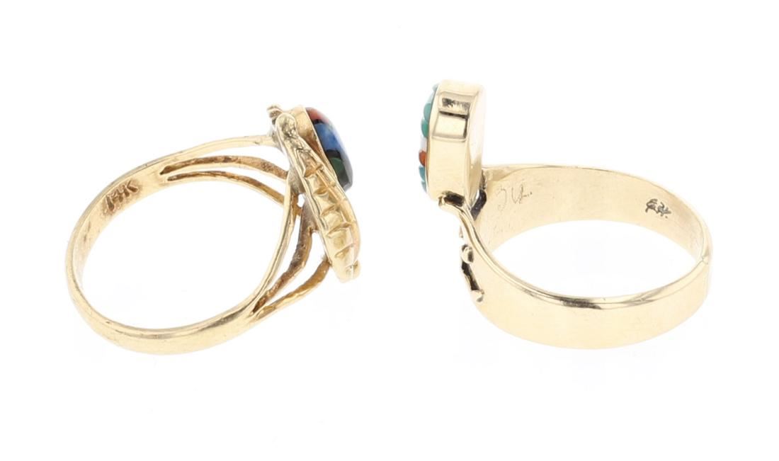 14K Gold | Genuine Coral & Turquoise | Vintage 14K Gold Southwest Multi Stone Rings | New Mexico | Weight:9.2 Grams, | Dimensions: (2) Rings: 7.25 to 8 size, .75" face widths | Signed: EH