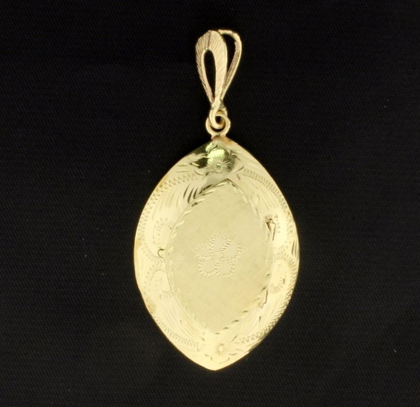 2.25" long. Hand engraved pattern. This is a beautiful locket! 9.6g