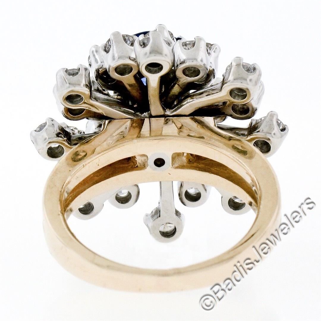 Vintage 14K TT Gold 3.26 ctw Round Sapphire Diamond Tiered Snowflake Cluster Rin