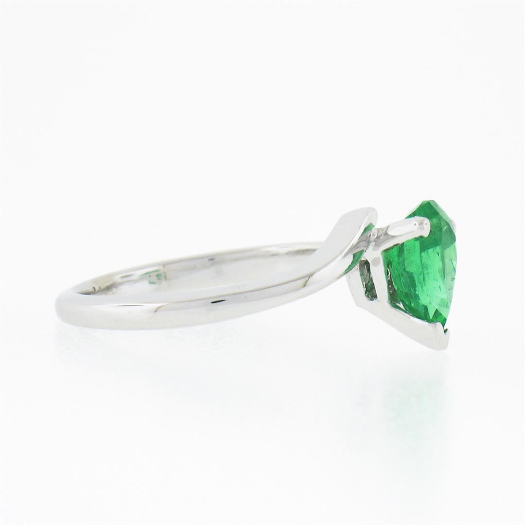 A vintage solid 14k white gold solitaire bypass ring, with 1 pear cut natural emerald (0.71ctw). The ring is size 4.5, weighs a total of 2.08 grams, and measures 7.90mm wide.