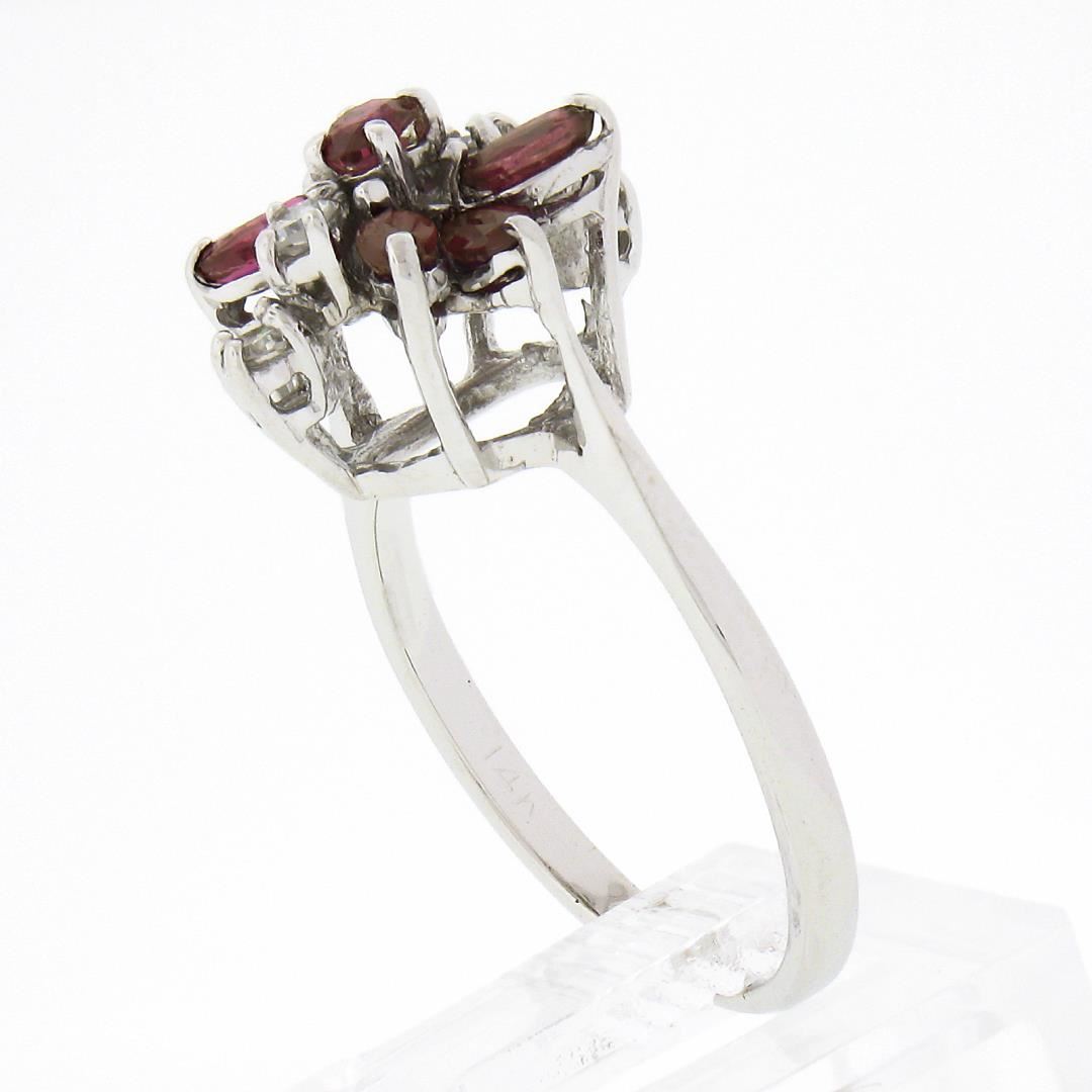 Vintage 14K White Gold 0.80 ctw Ruby & Diamond Petite Tiered Spray Cluster Ring