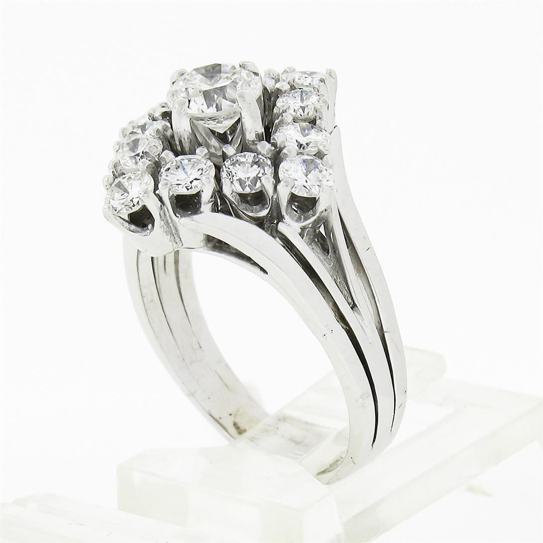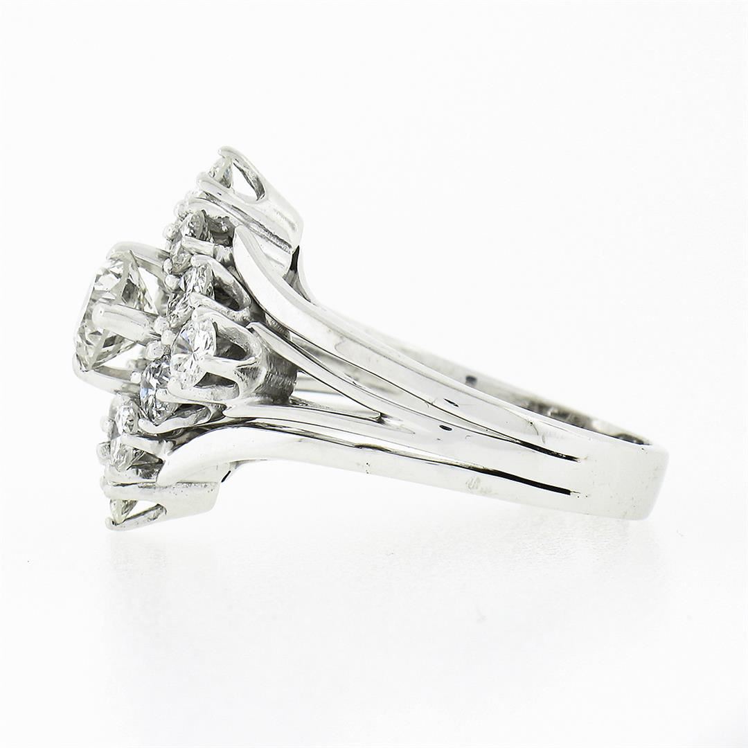 A solid 14k white gold ring, with 1 old transitional cut natural diamond (H - VS2 ; 0.60ct), and 12 old transitional cut natural diamonds (H/I - VS1-SI1 ; 1.44ctw). The ring is size 6.0, weighs a total of 6.93 grams, and measures 17.35mm wide.