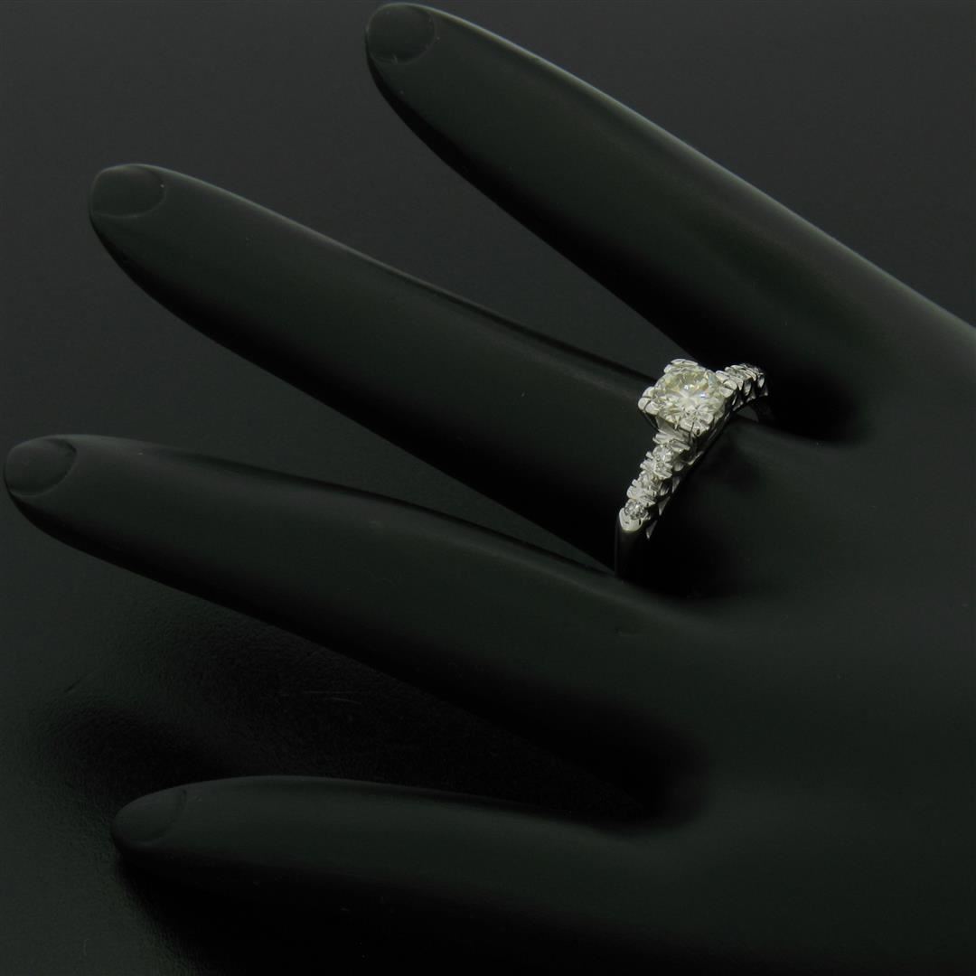 Vintage 14K White Gold .70ctw Transitional Cut Diamond Solitaire Engagement Ring. Please see photos and description for all available information. A vintage solid 14k white gold solitaire engagement ring, featuring 1 round transitional cut natural diamond