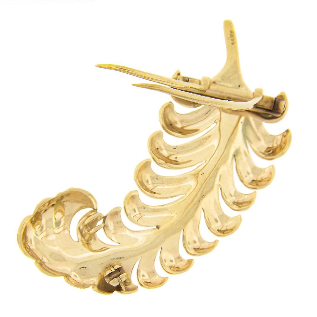 A vintage solid 14k yellow gold feather brooch. Measures 27.1x58mm and weighs a total of 16.75 grams.