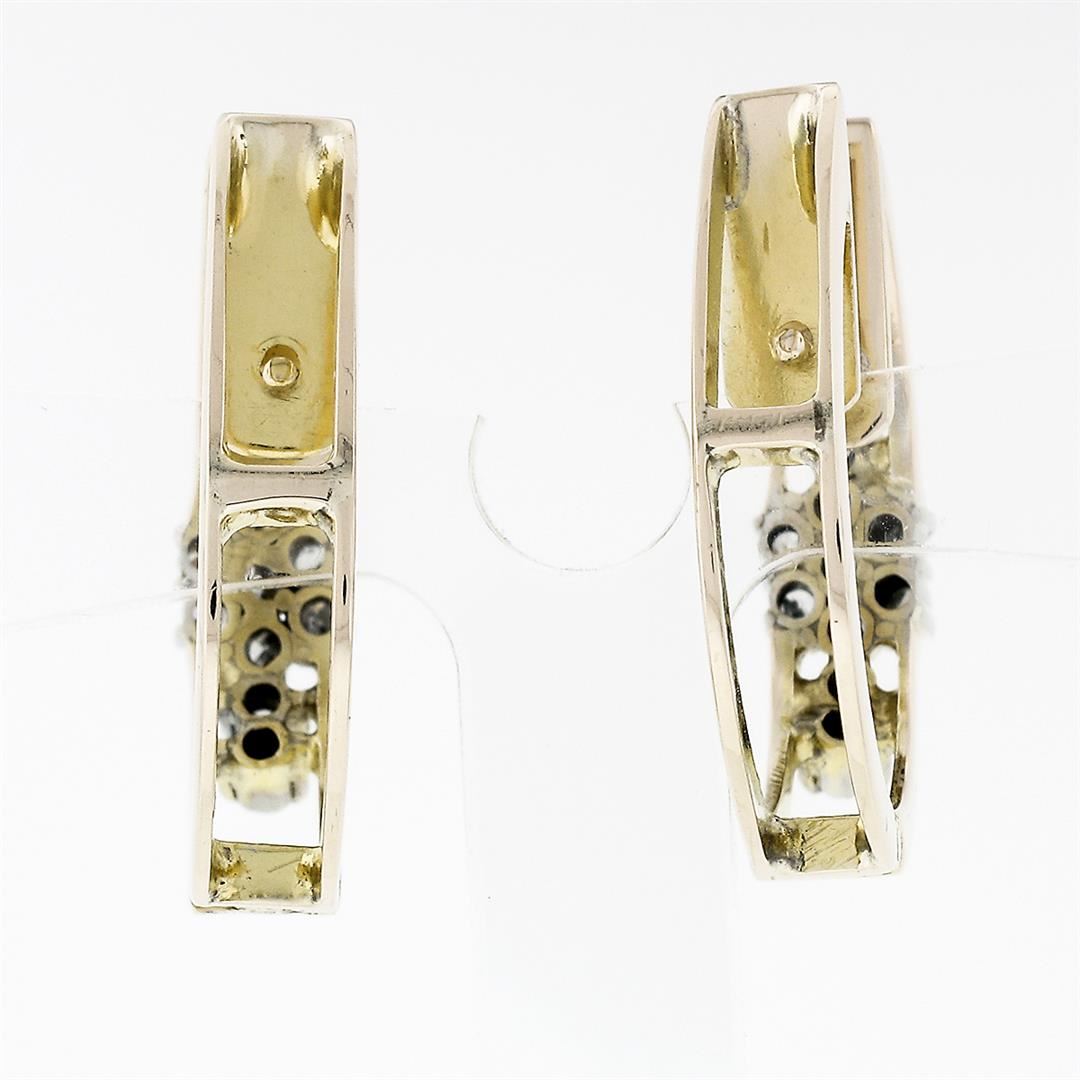 A solid 14k yellow gold huggie hoop earrings, with 22 round single cut natural diamonds (H/I - SI2/I1 ; 0.32ctw). The earrings measure approximately 23.08x5.51mm and weigh a total of 6.38 grams.