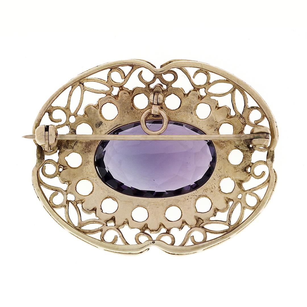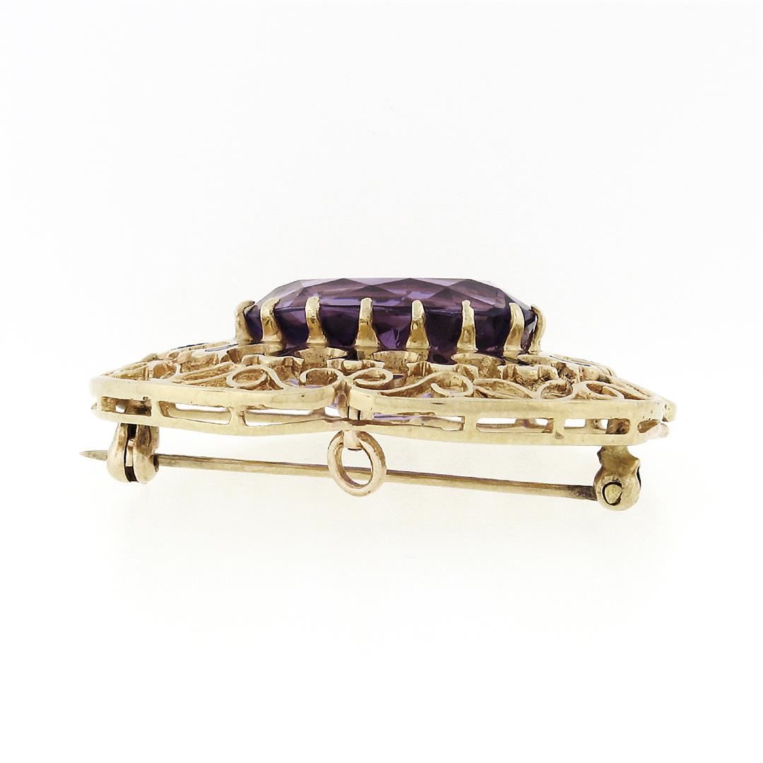 a vintage solid 14k yellow gold pendant pin brooch, with 1 elongated oval brilliant cut natural amethyst (19.8x13.6mm - 13.0ct ). Measures 31x38.75mm and weighs a total of 14.0 grams.