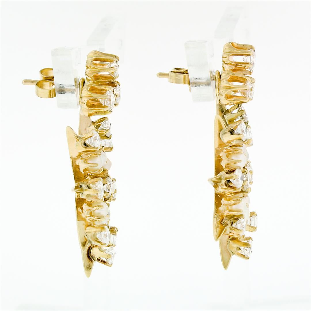 A vintage pair of solid 14k yellow gold earrings with 24 natural diamonds (G/H - VVS2/VS2; 2.75ctw) and 8 cultured pearls (2.5mm). The earrings measure approximately 32.96x25.13mm and weigh a total of 9.00 grams.
