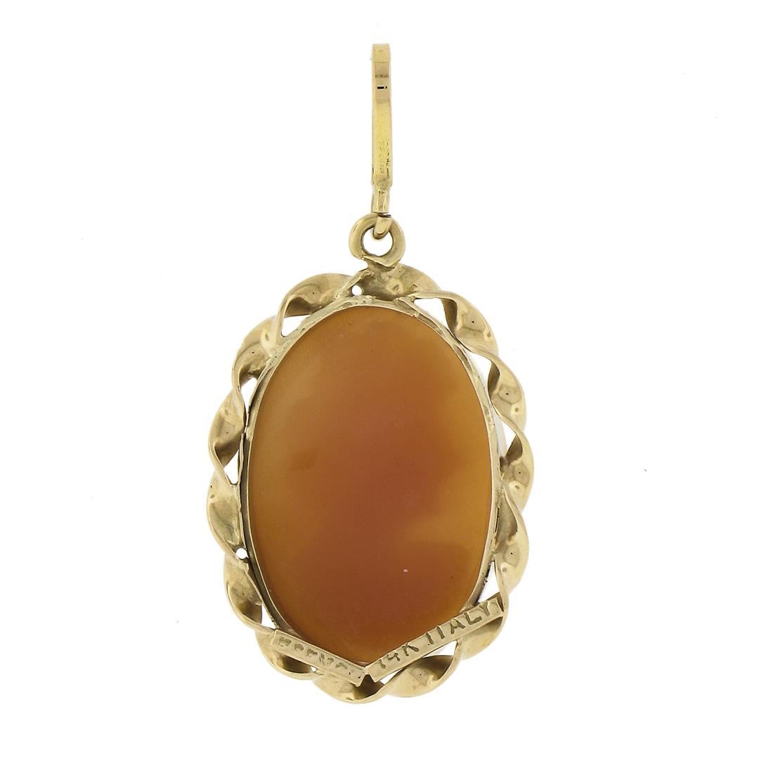 Vintage 14k Gold Bezel Carved Shell Oval Cameo Twisted Wire Frame Charm Pendant