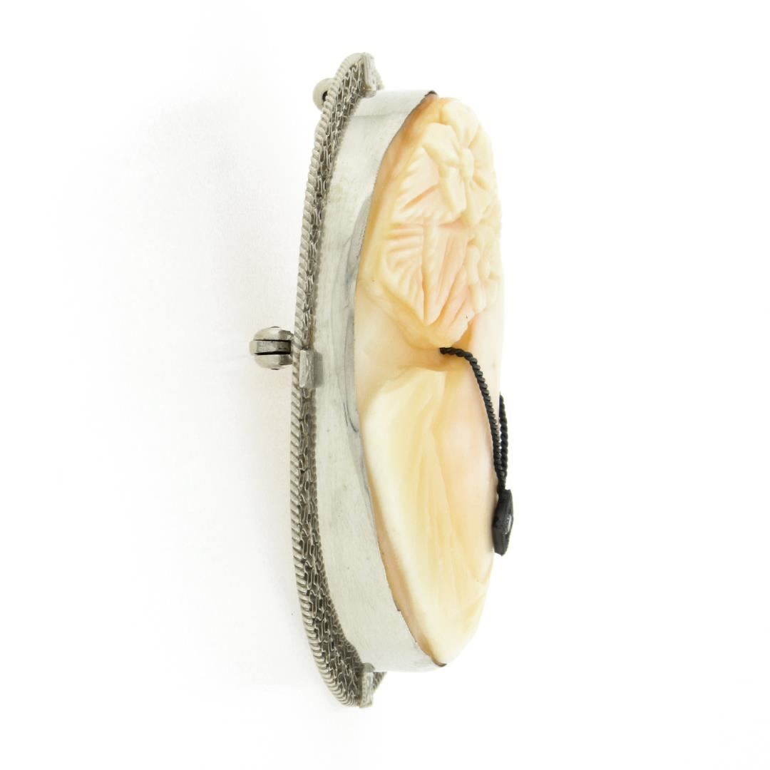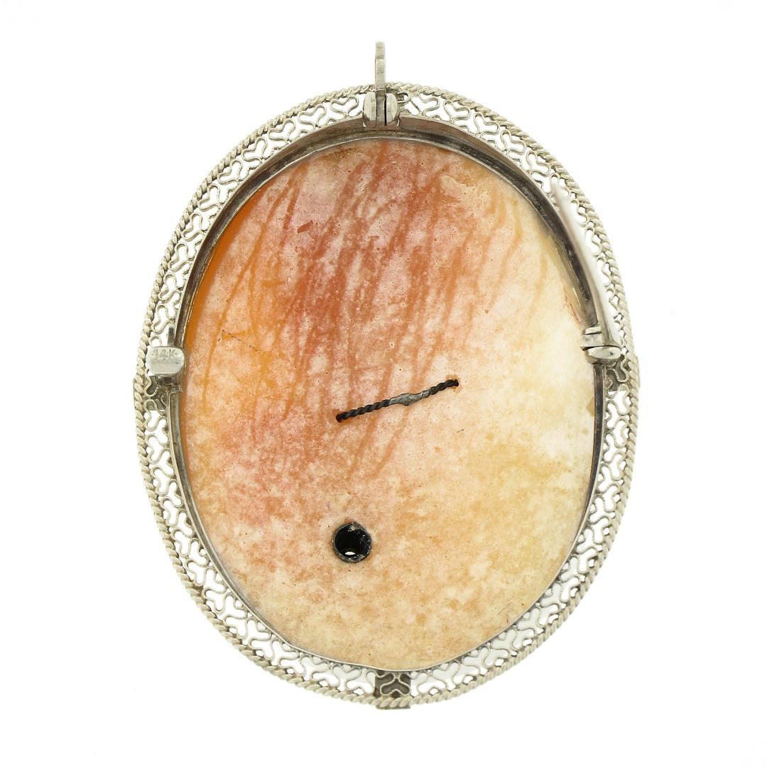 Vintage 14k Gold Carved Shell Cameo & Detailed Filigree Frame Pin Brooch Pendant