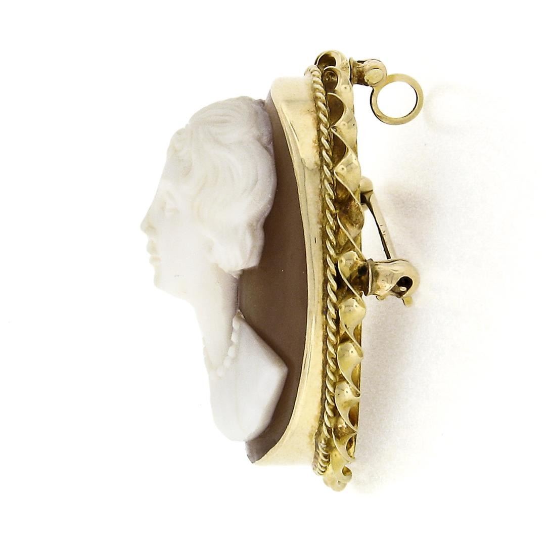 Vintage 14k Gold Concave Carved Shell Cameo Twist Wavy Frame Pendant Brooch Pin