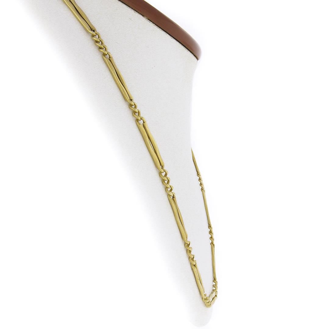 a vintage solid 14k yellow gold curb & open bar link chain necklace. It weighs a total of 40.7 grams, measures 4.8mm wide, and measures 32 inches in length.
