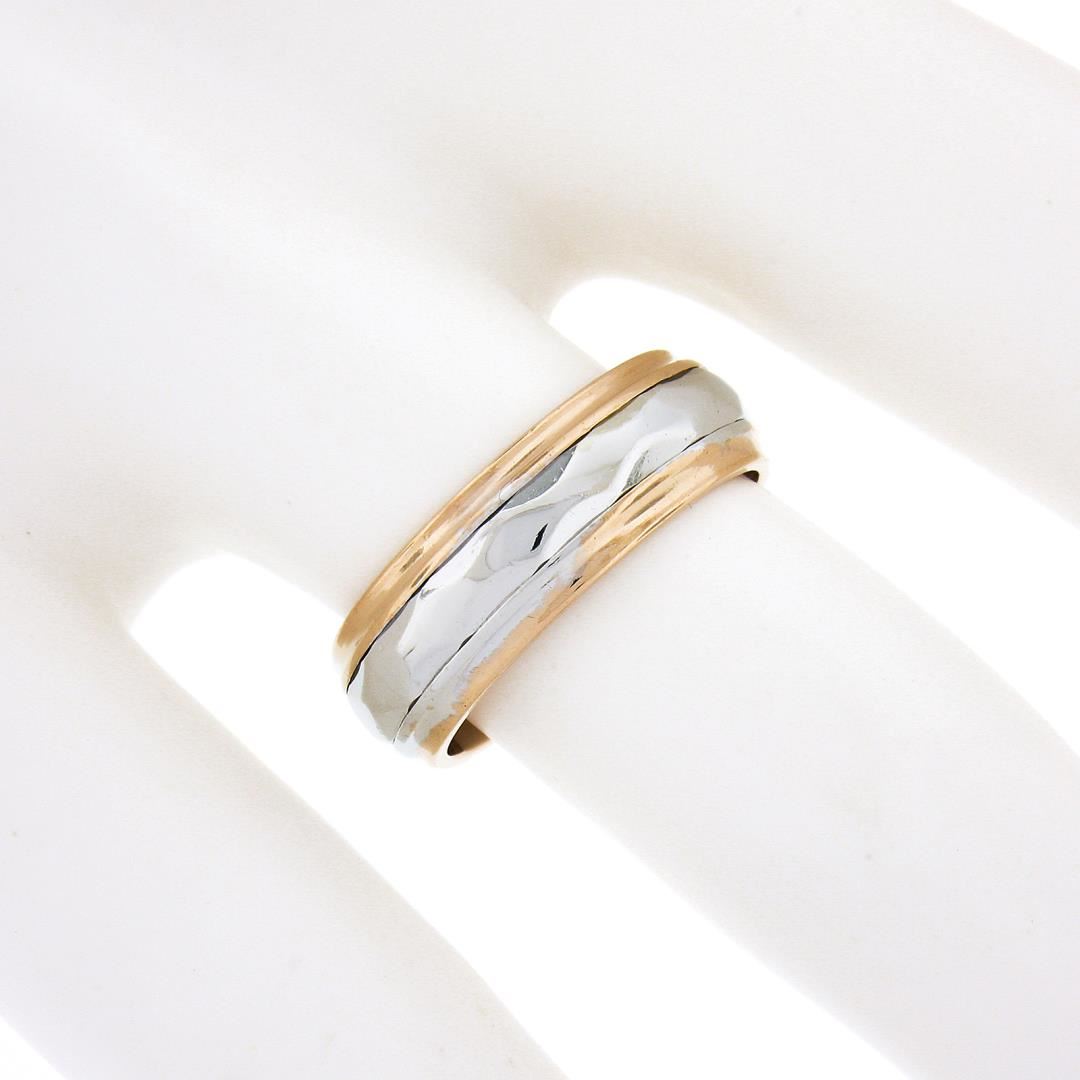 A vintage solid 14k rose & white gold band ring. The ring is size 5.0, weighs a total of 5.18 grams, and measures 5.9mm wide.