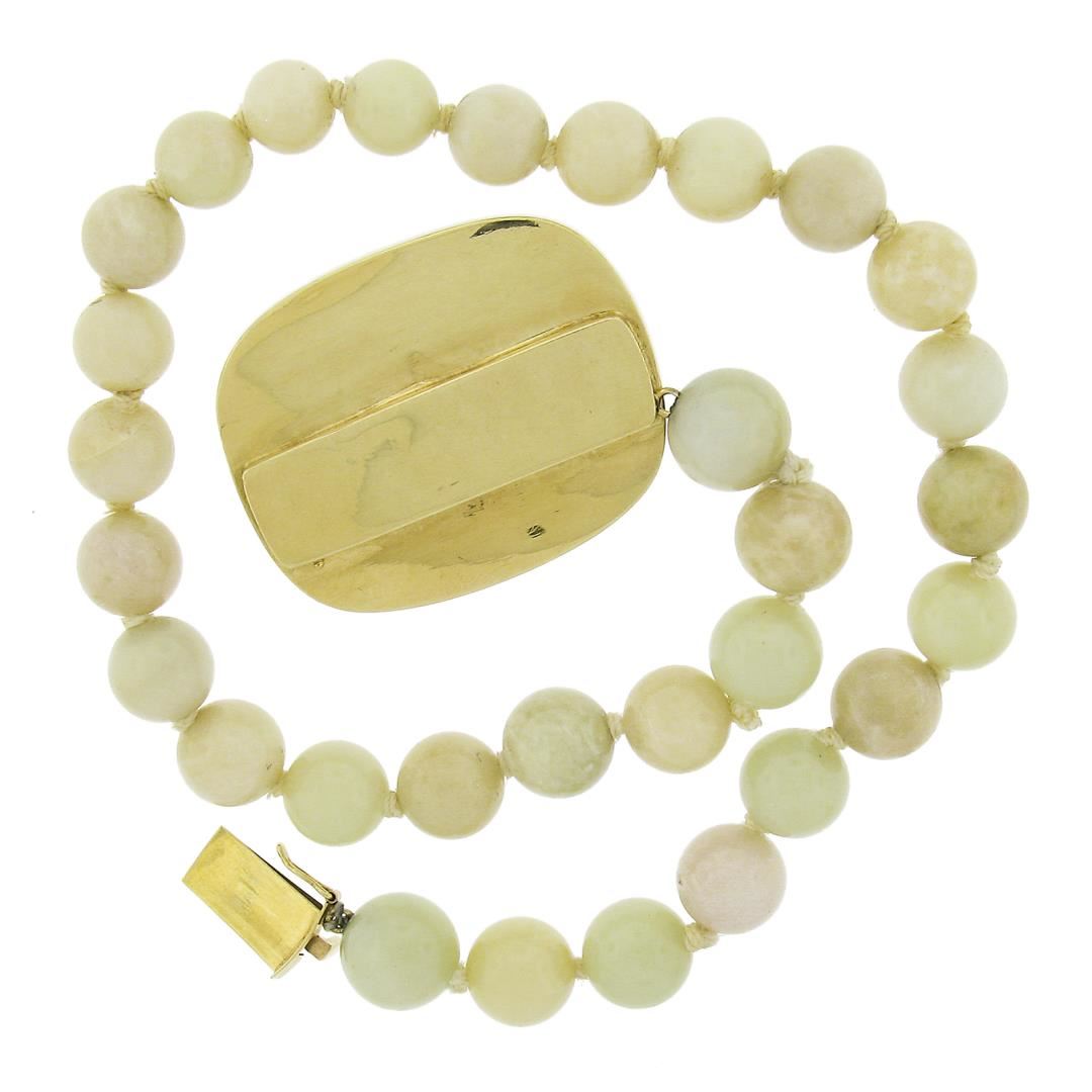 Vintage 14k Gold Gia Jade Bead Necklace w/ Matching Dangle Clip On Earrings Set