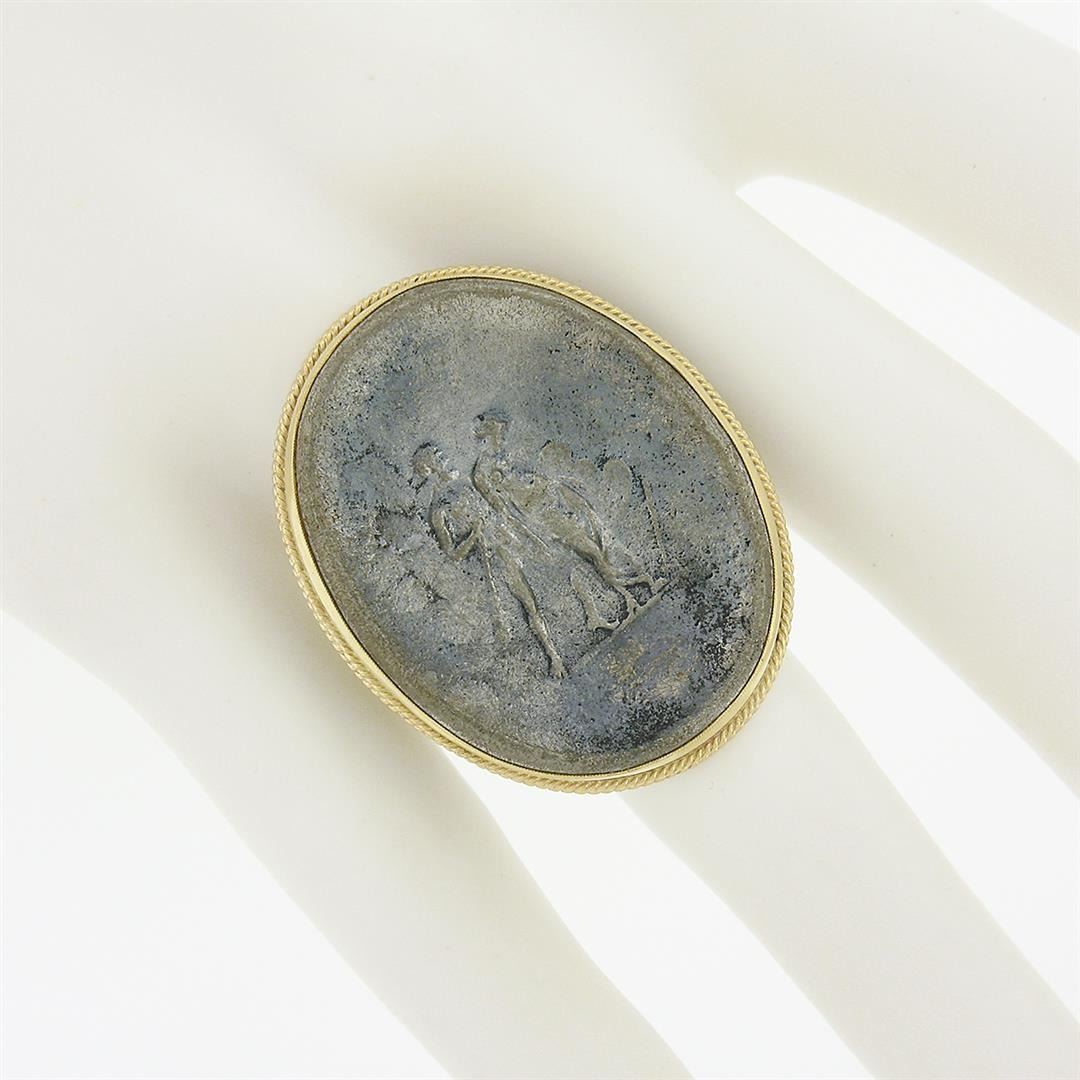 Vintage 14k Gold Large Oval Bezel Metal Cameo Man Woman Twisted Wire Frame Ring