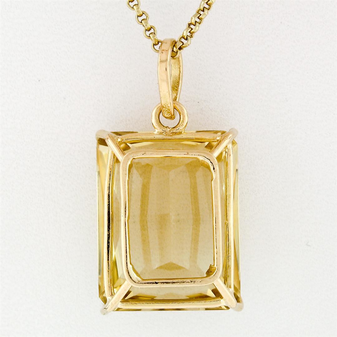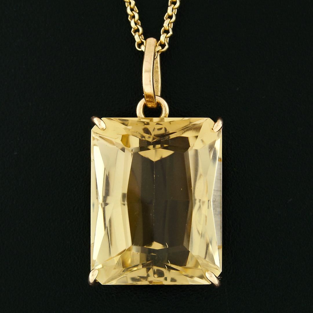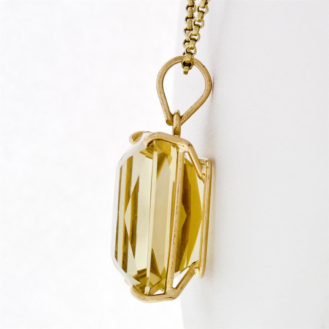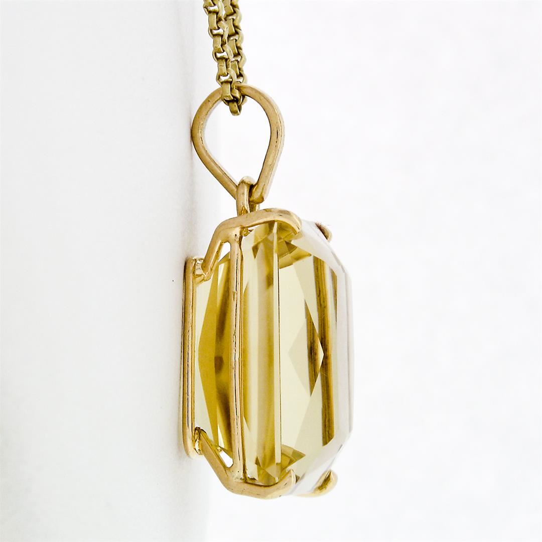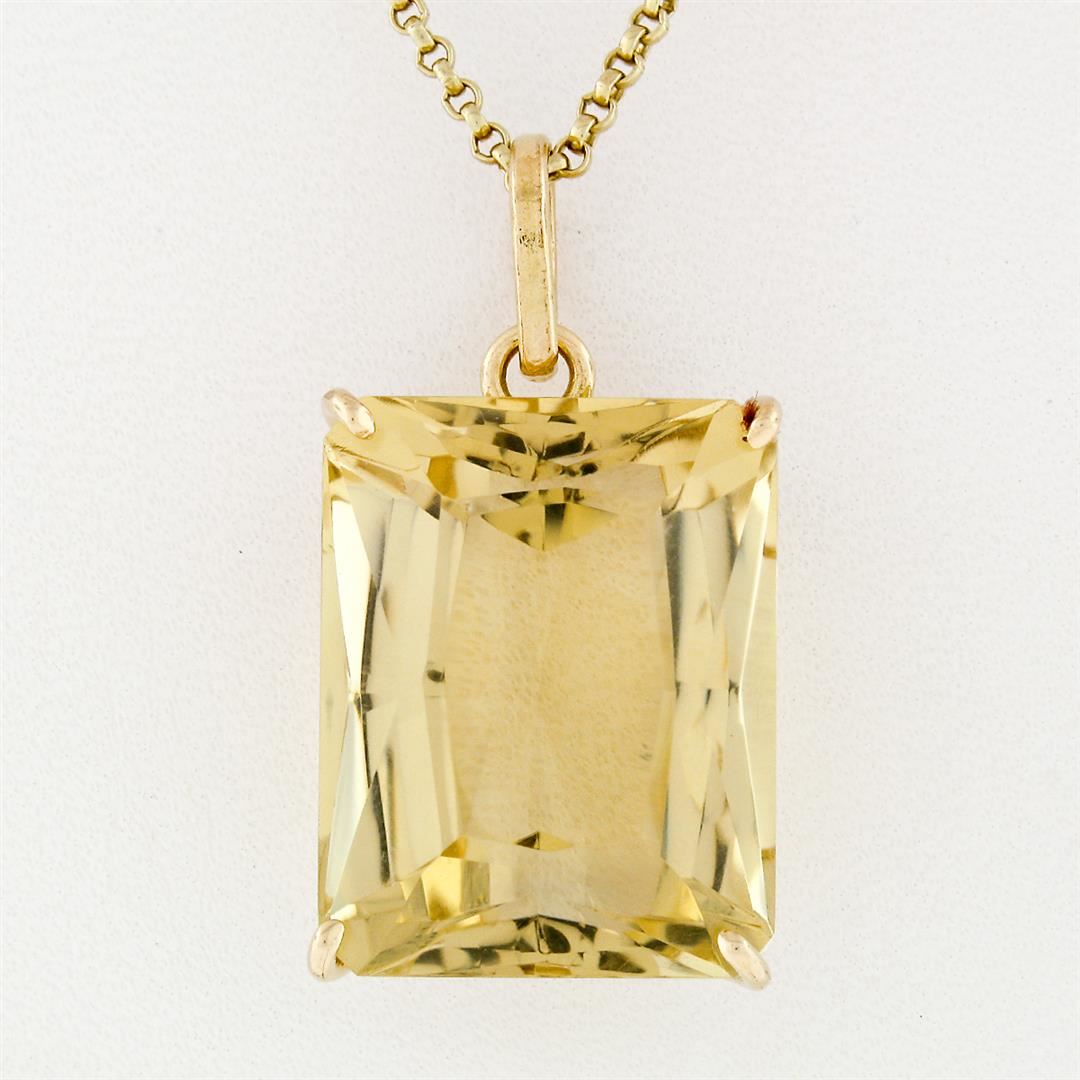 Vintage 14k Gold Large Rectangular Lemon Quartz 18" Vintage Rolo Chain Pendant